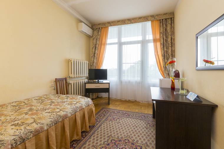 - 1-местный 1-комнатный 1-категории. Площадь 12 кв.м. В номере: односпальная кровать, телевизор, холодильник, электрический чайник, санузел с душевой кабиной, балкон. Дополнительное место раскладушка.