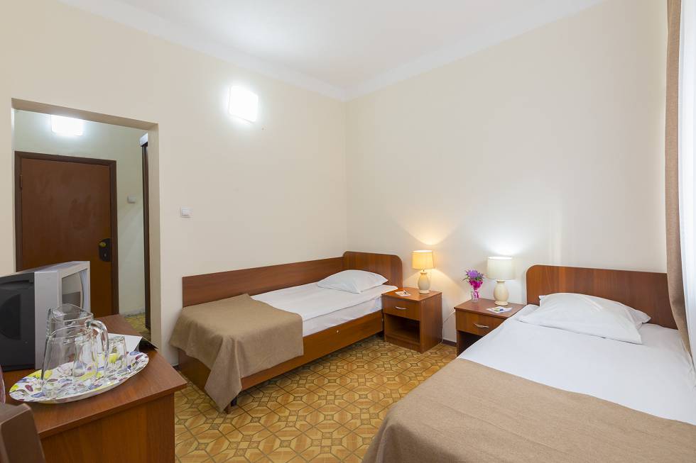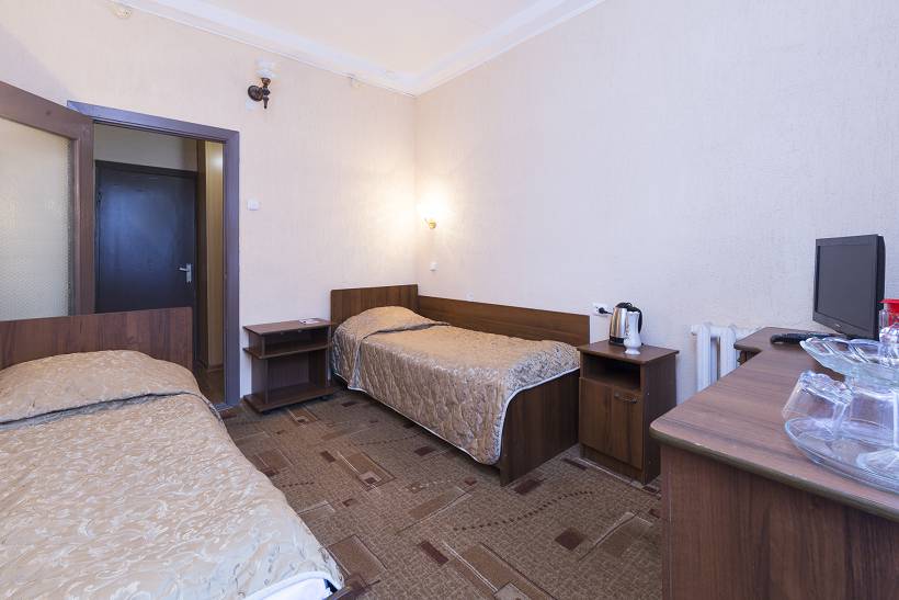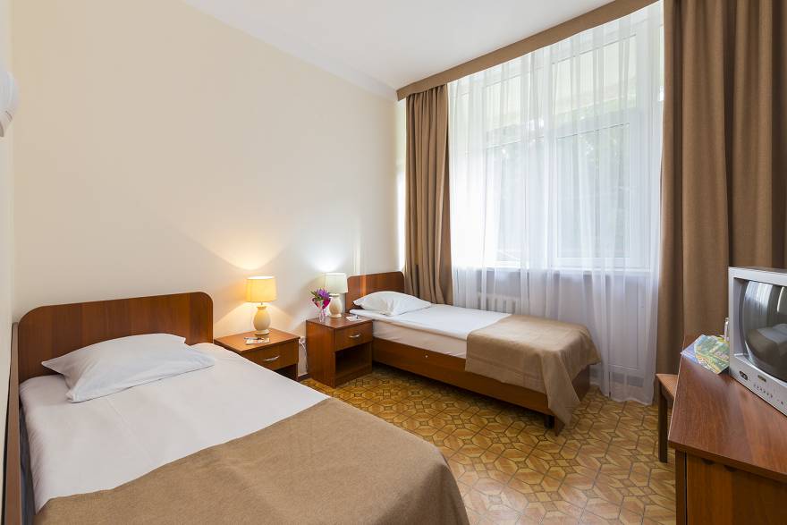 - 2-местный 1-комнатный 1-категории. Площадь 20 кв.м. В номере: две односпальные кровати, телевизор (спутниковые каналы), холодильник, электрический чайник, санузел с душевой кабиной. Дополнительное место раскладушка.
