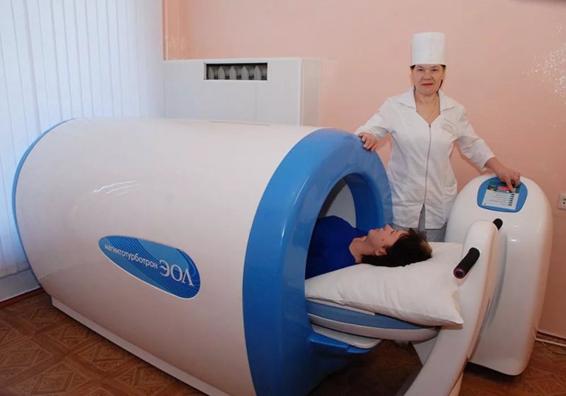 - физиотерапевтический комплекс (общая и местная магнитотерапия, электрофорез, лазерное воздействие, УФО, КВЧ- и ДМВ-терапия, индуктотермия Д' Арсонваль, УВЧ, электросон, пневмомассаж, синусоидальные модулированные токи, электрофорез);