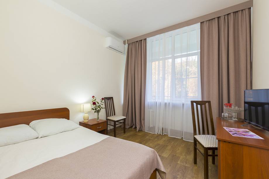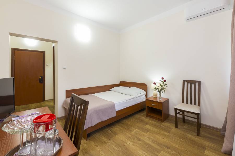 - 1-местный 1-комнатный 1-категории. Площадь 12 кв.м. В номере: односпальная кровать, телевизор, холодильник, электрический чайник, кондиционер, санузел с душевой кабиной. Дополнительное место раскладушка.
