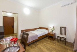 - 1-местный 1-комнатный 1-категории. Площадь 14 кв.м. В номере: односпальная кровать, телевизор (спутниковые каналы), холодильник, электрический чайник, санузел с душевой кабиной. Дополнительное место раскладушка.