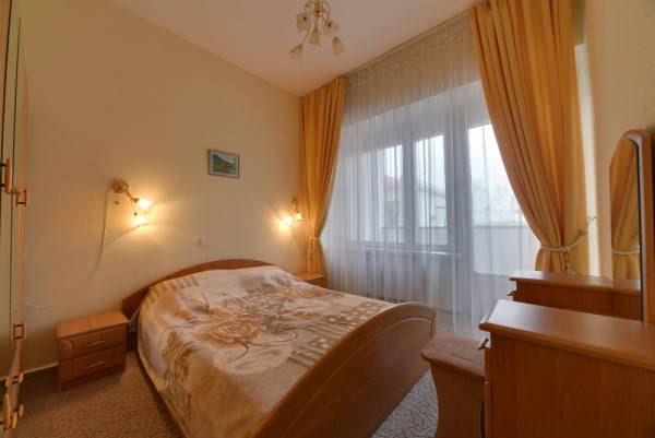 - 2-местный 2-комнатный Семейный (ремонт 2013-2014 г). Площадь номера – 28 кв.м. В номере: двуспальная кровать, телевизор, холодильник, чайник, набор посуды, система кондиционирования воздуха, ванные принадлежности, совмещенный санузел с ванной, балкон.