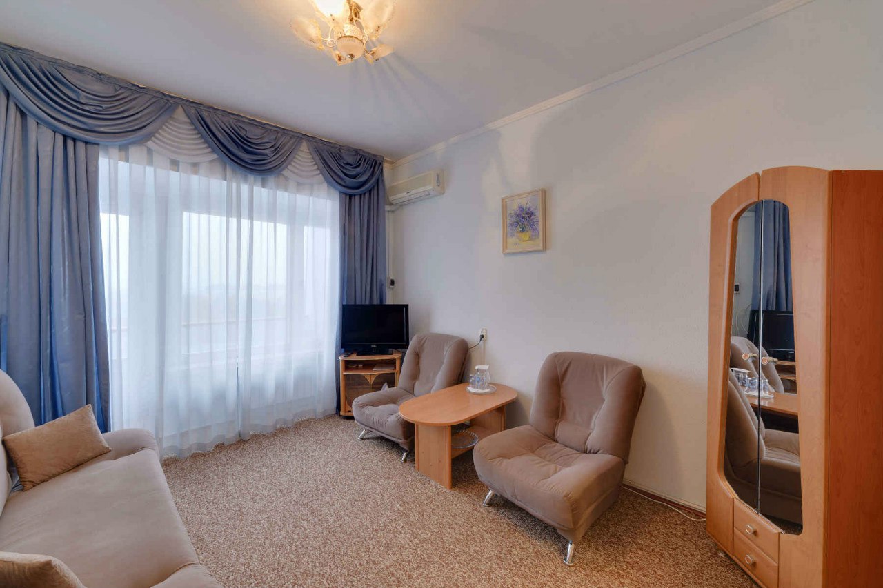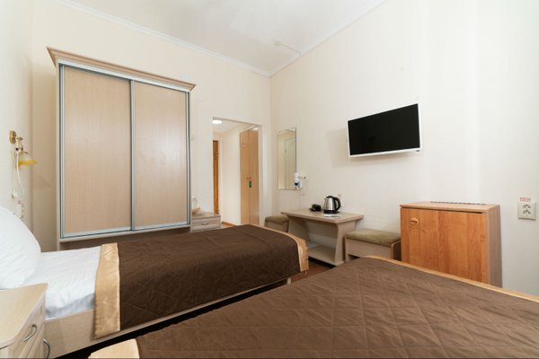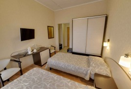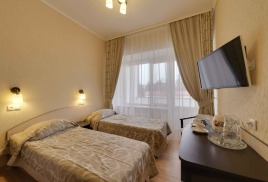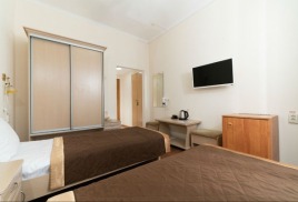 - 2-местный номер 1-категории. Площадь номера - 14 кв.м. В номере: 2 раздельные кровати, телевизор, холодильник, чайник, совмещенный санузел с поддоном или душевой кабиной, балкон.Номера на 5м этаже.