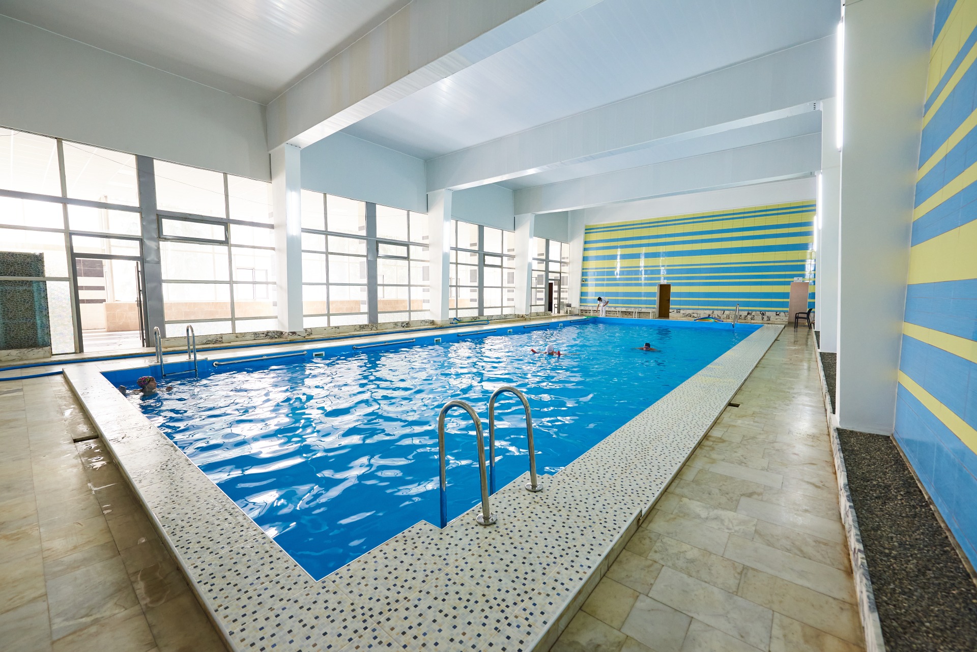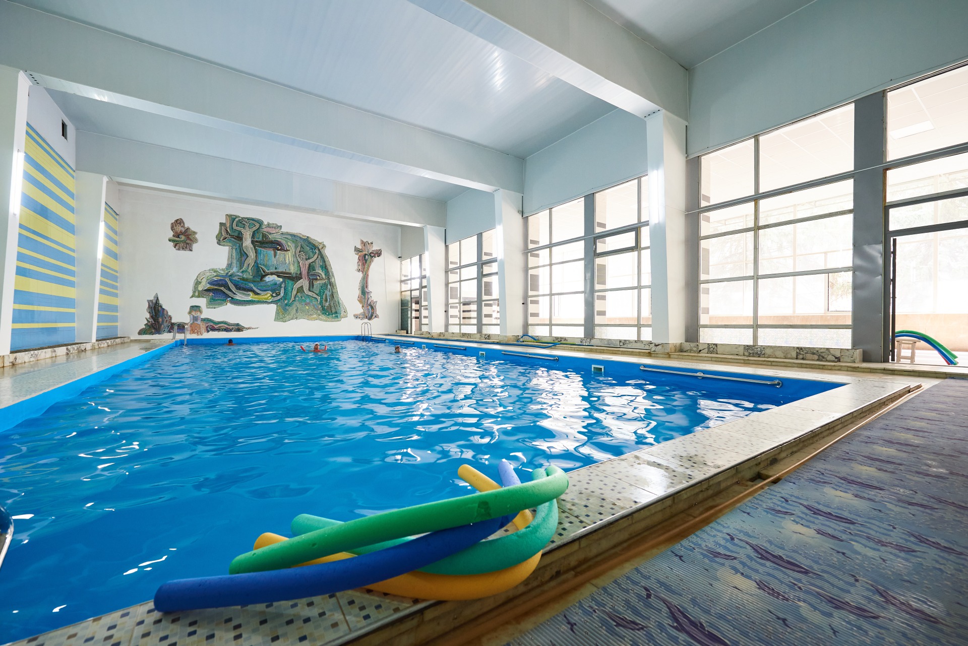 - бассейн крытый с пресной водой 20 х 14 м, глубина бассейна от 1,5 м до 2м;