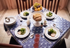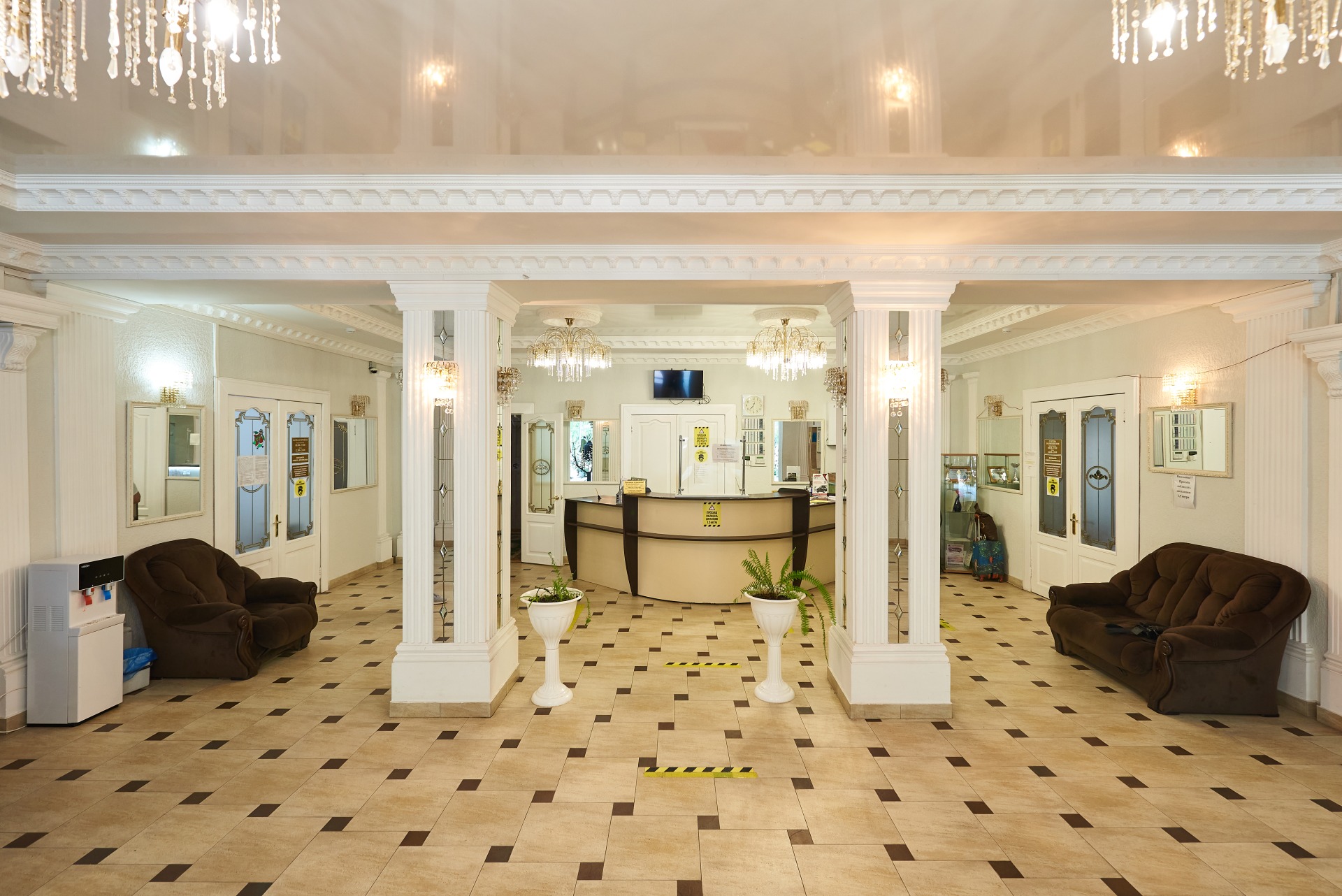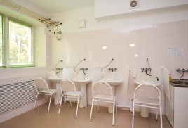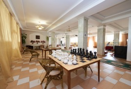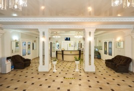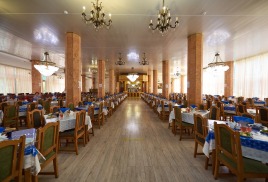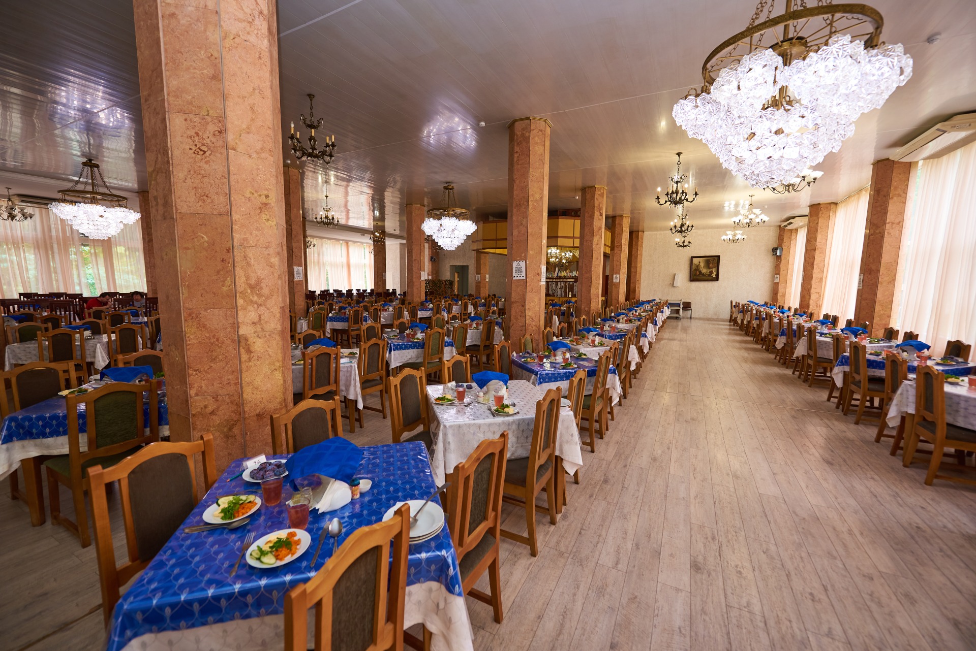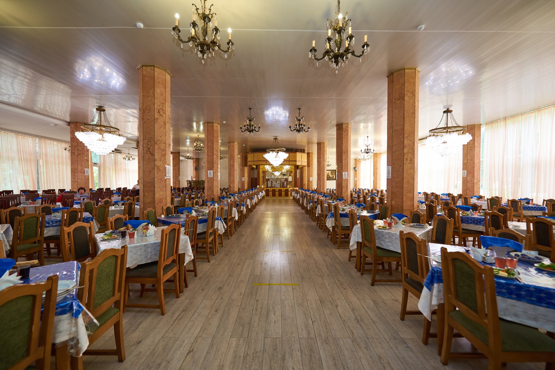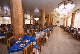 Питание: 3-х разовое диетическое питание по системе меню-заказ по 15-ти диетам Певзнера соответственно профилю курорта и заболеваниям пациентов санатория. Для проживающих в номерах категории Улучшенный в общей столовой выделена отдельная зона, питание по расширенному меню.