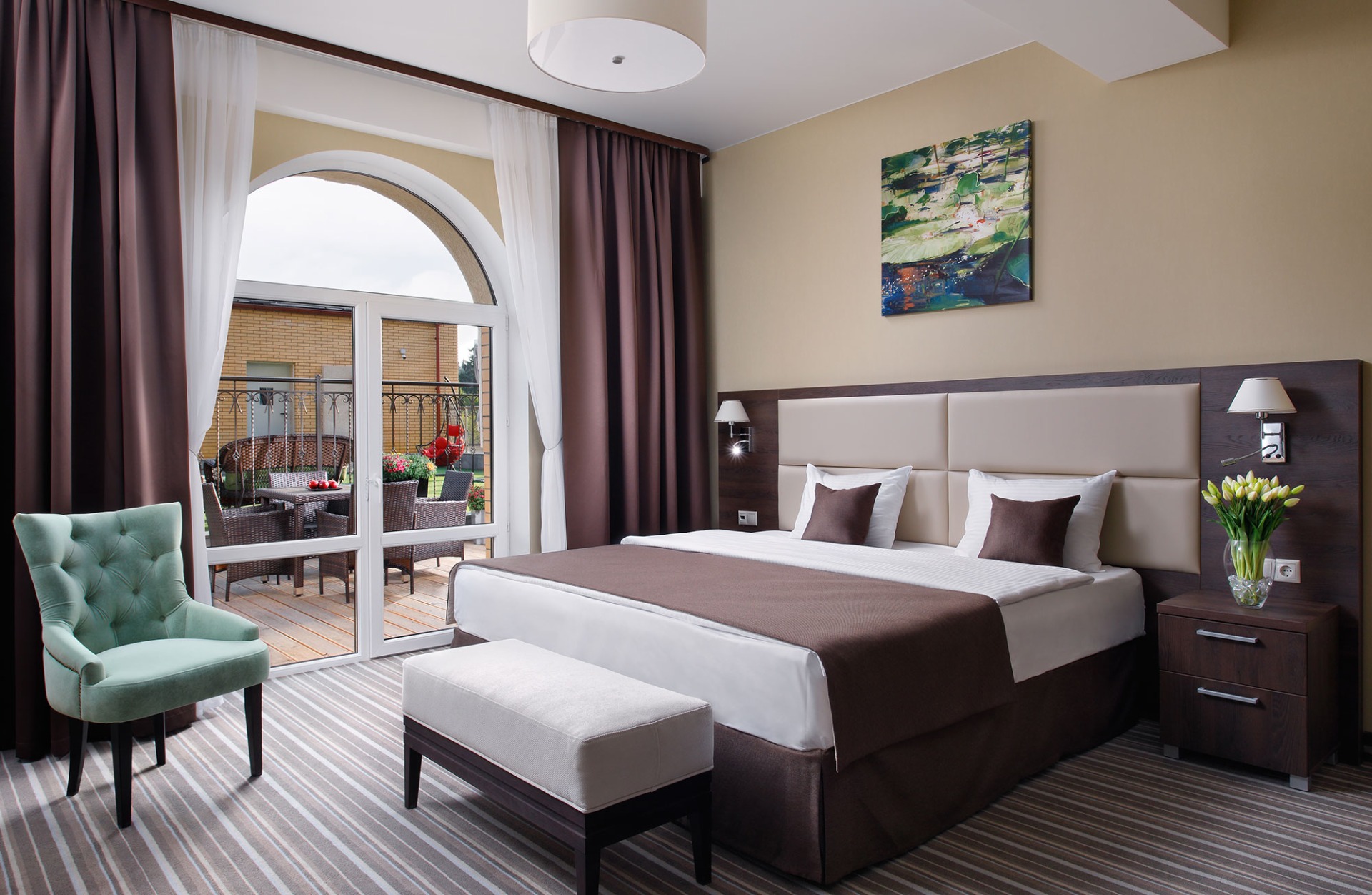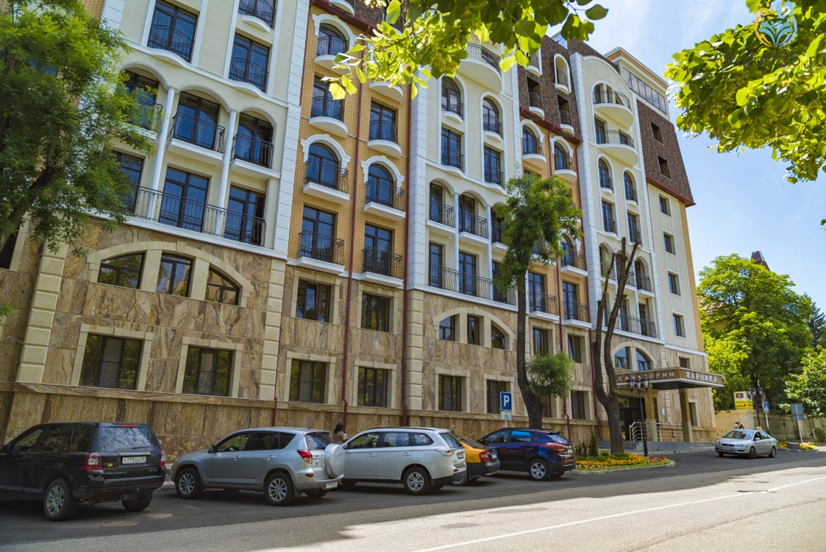Удачное расположение — гордость санатория. «Арника» находится в нескольких минутах ходьбы от Кисловодского парка с его знаменитыми терренкурами и питьевыми бюветами.