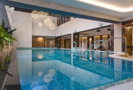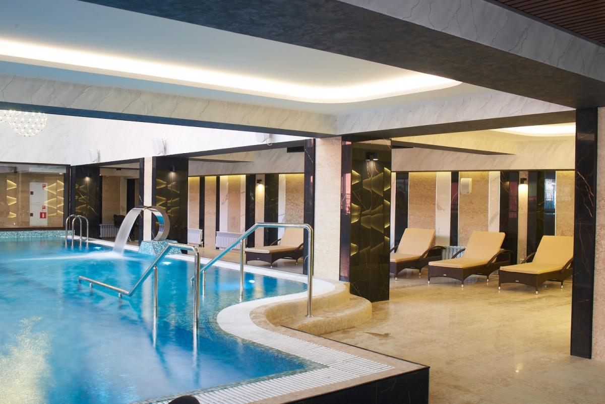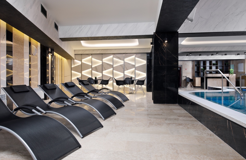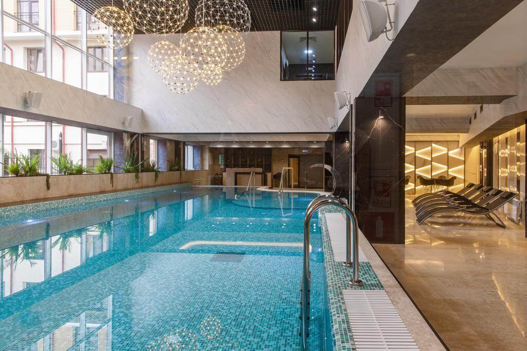 Ежедневно проводятся групповые занятия аквааэробикой. Есть шезлонги для отдыха. Также прямо в помещении есть лифт на террасу, чтобы принять солнечные и воздушные ванны. В зоне бассейна есть два SPA кабинета, в которых можно получить уход, принять пароуглекислую ванну и отдохнуть в «Альфа капсуле».