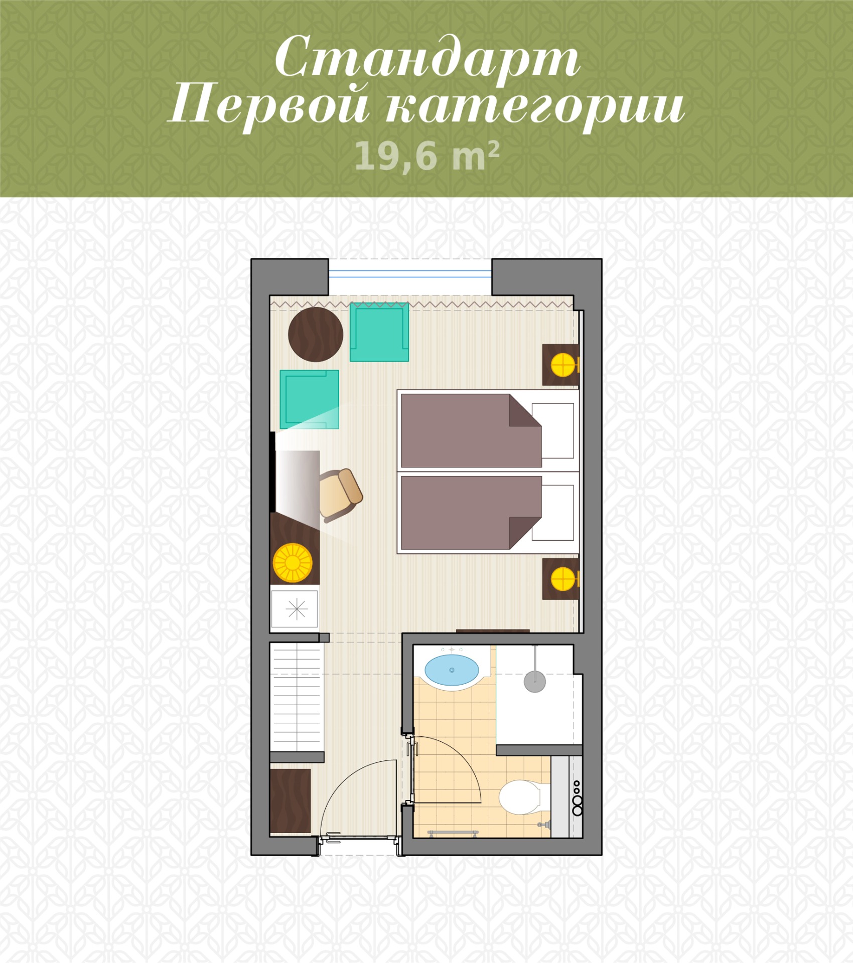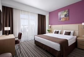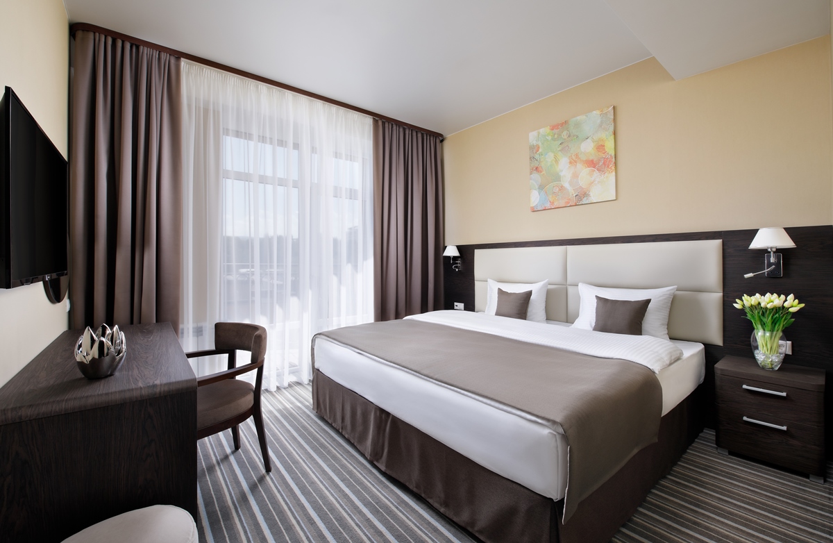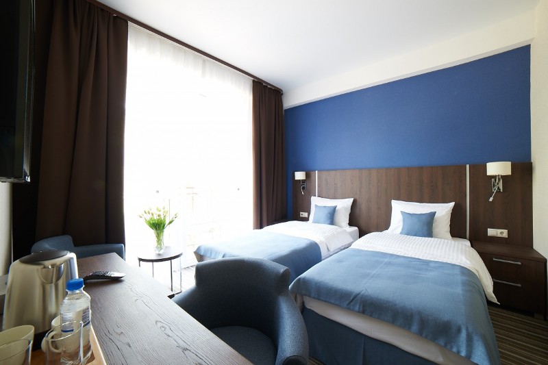 - 2-местный Стандарт. Площадь: 19,6 кв.м. В номере: сейф, телефон, ЖК телевизор, сплит-система, холодильник, 2-спальная кровать 180х200 или две 1-спальные 90х200, балкон, Wi-Fi доступ в интернет