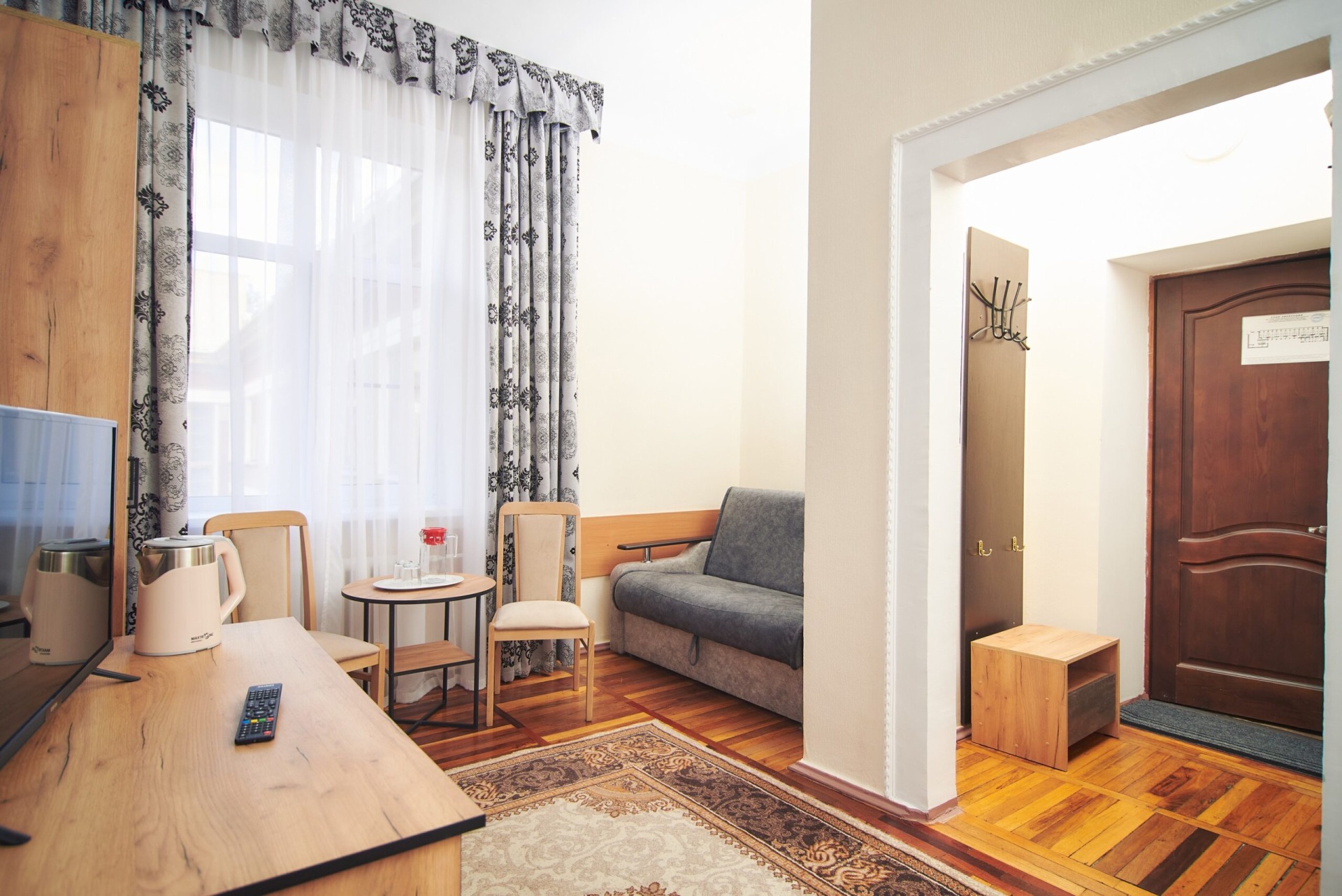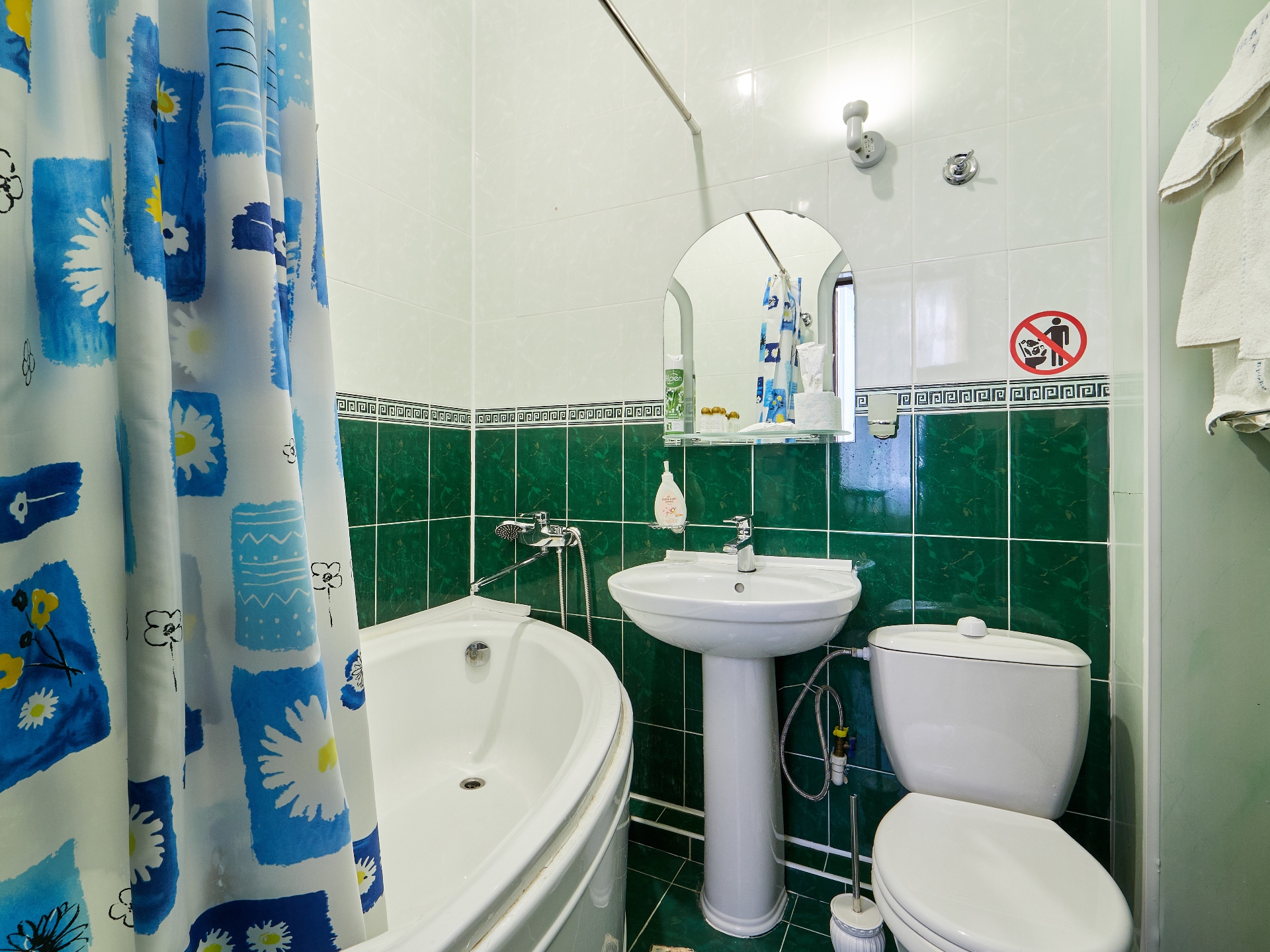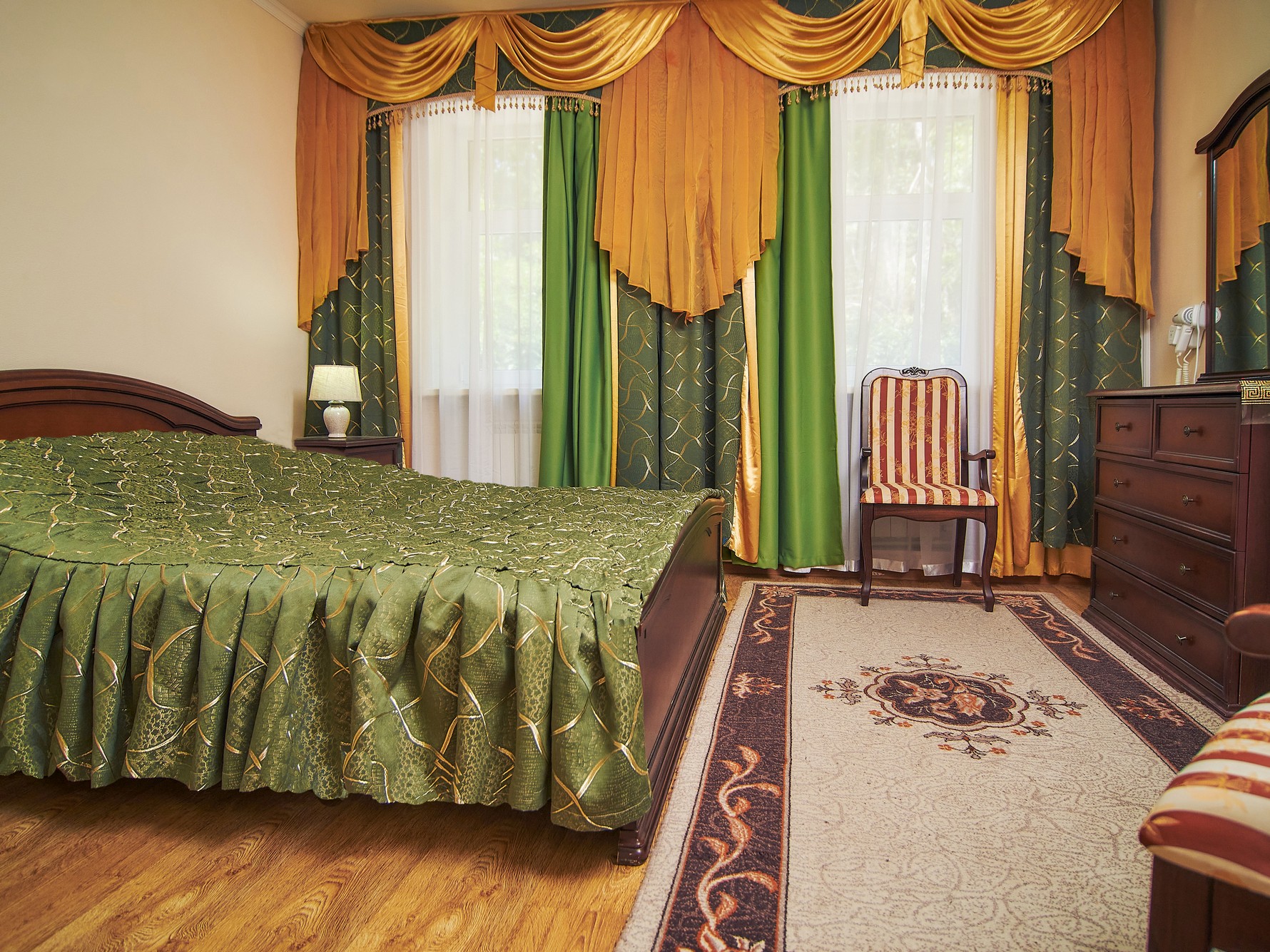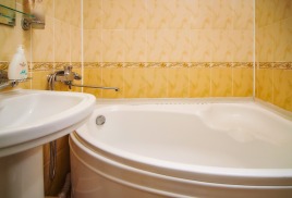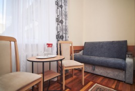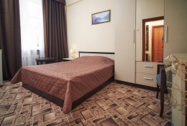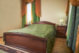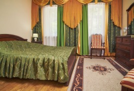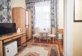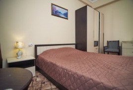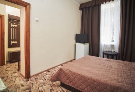 - 2-местный 2-комнатный 1й категории. (9 номеров). Площадь: 25 кв.м. В номере: гостиная с мягкой мебелью, спальня, телевизор, холодильник, электрочайник, столовая посуда, санузел: биде, ванна.