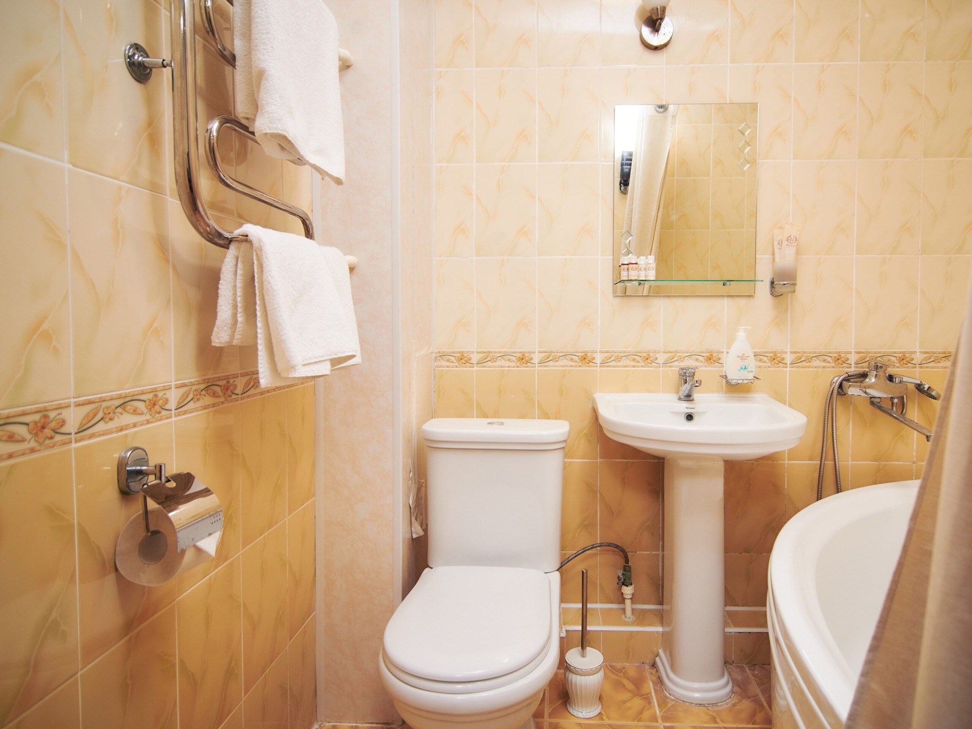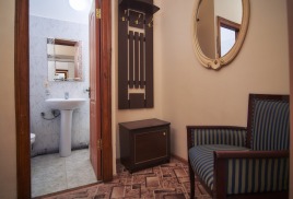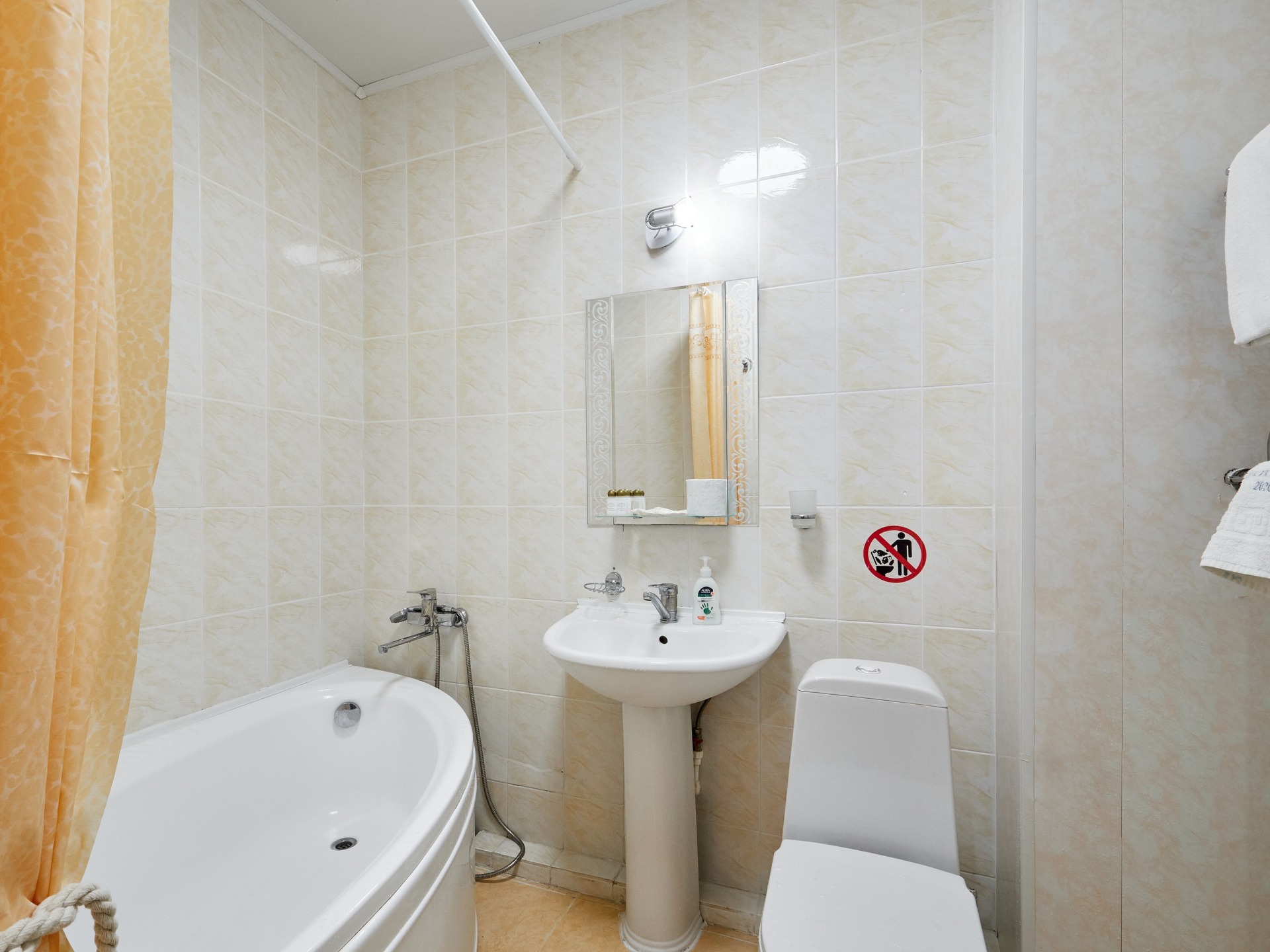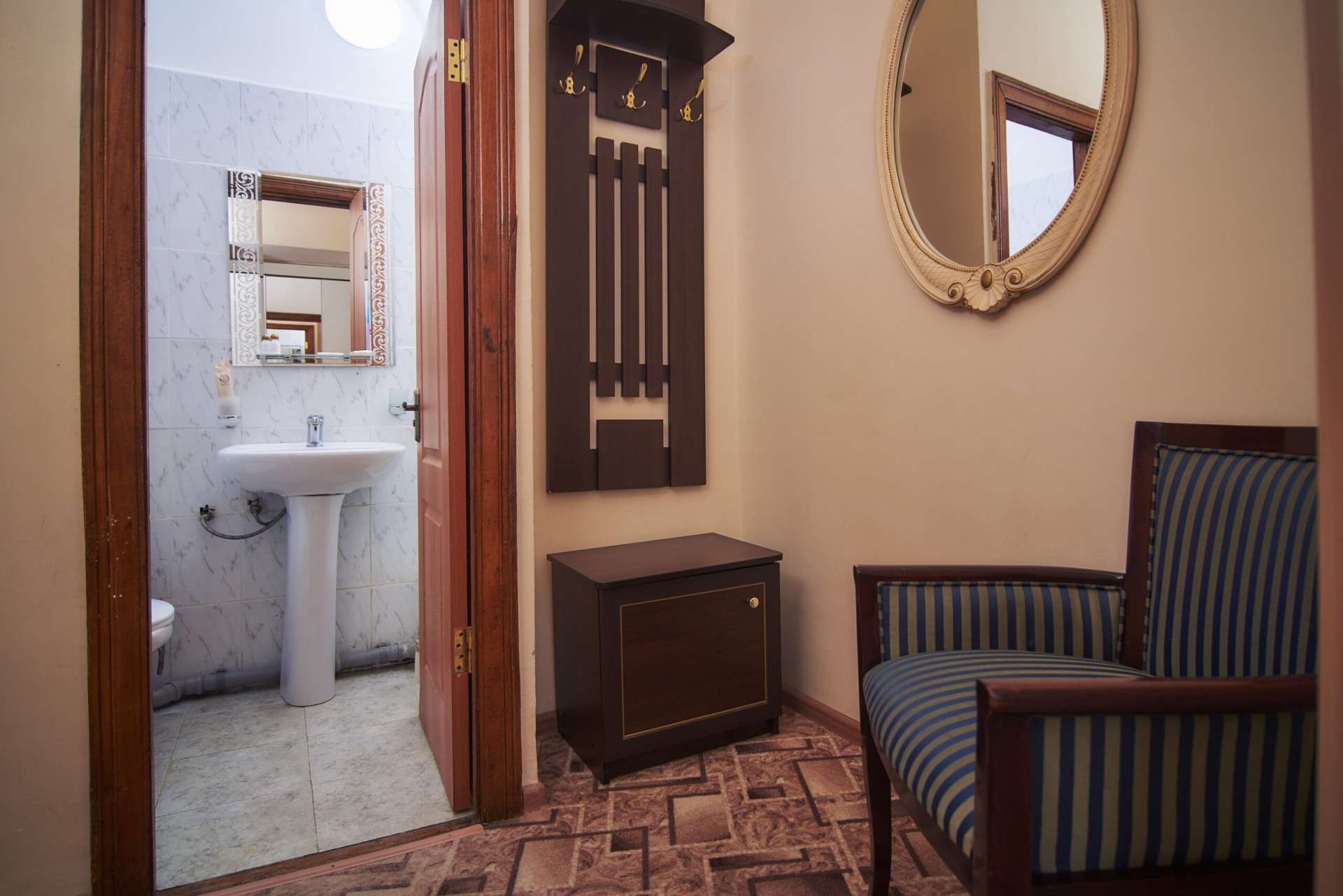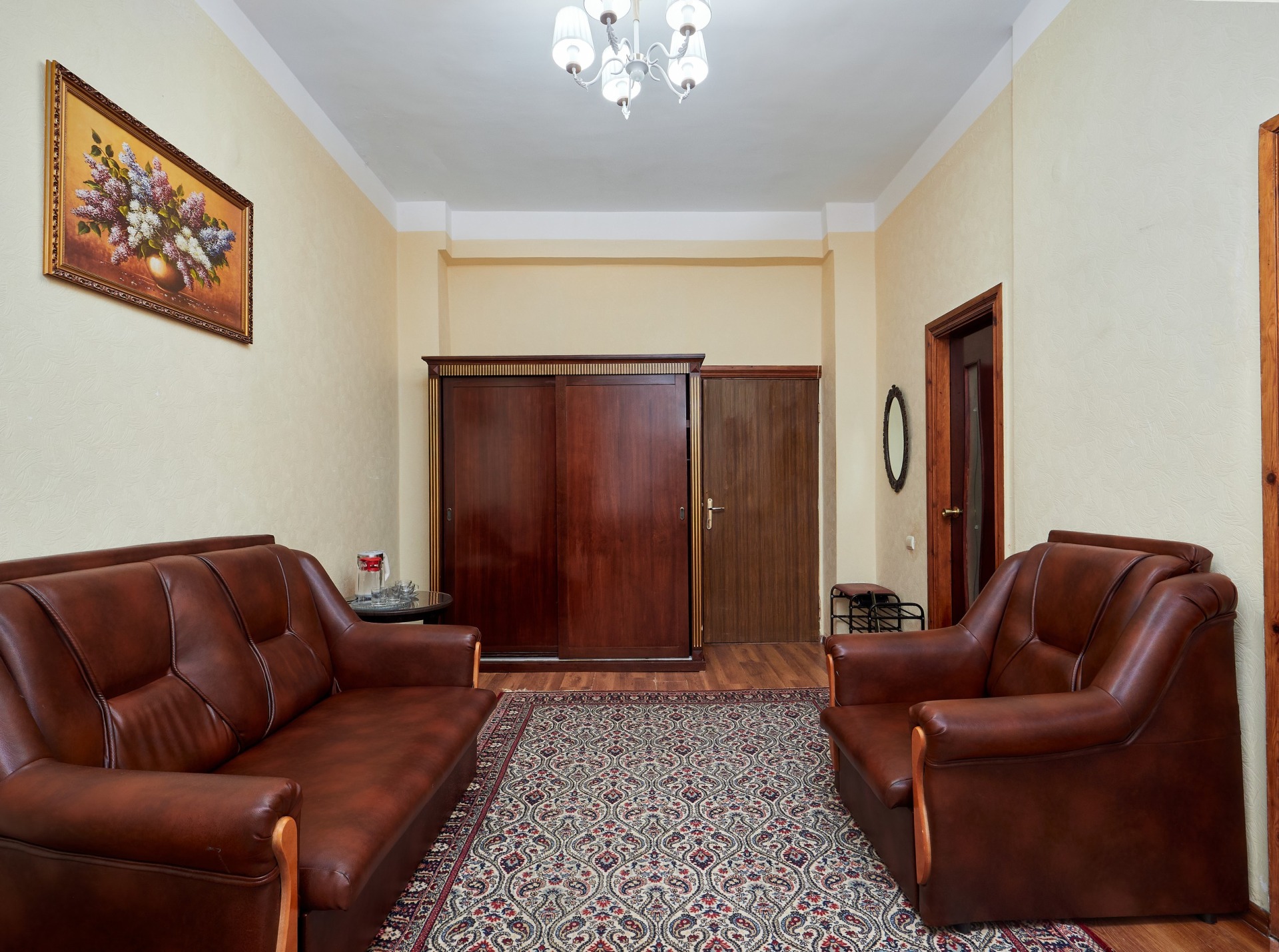 - 2-местный 2-комнатный 1й категории. (9 номеров). Площадь: 25 кв.м. В номере: гостиная с мягкой мебелью, спальня, телевизор, холодильник, электрочайник, столовая посуда, санузел: биде, ванна.
