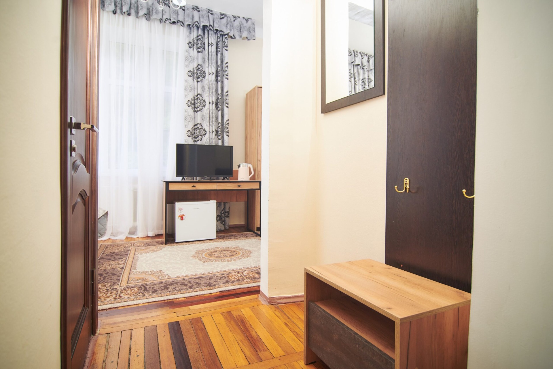 - 1-местный 1-категории (7 номеров). Площадь: 16 кв.м. В номере: телевизор, холодильник, электрочайник, столовая посуда, санузел: душ с поддоном.