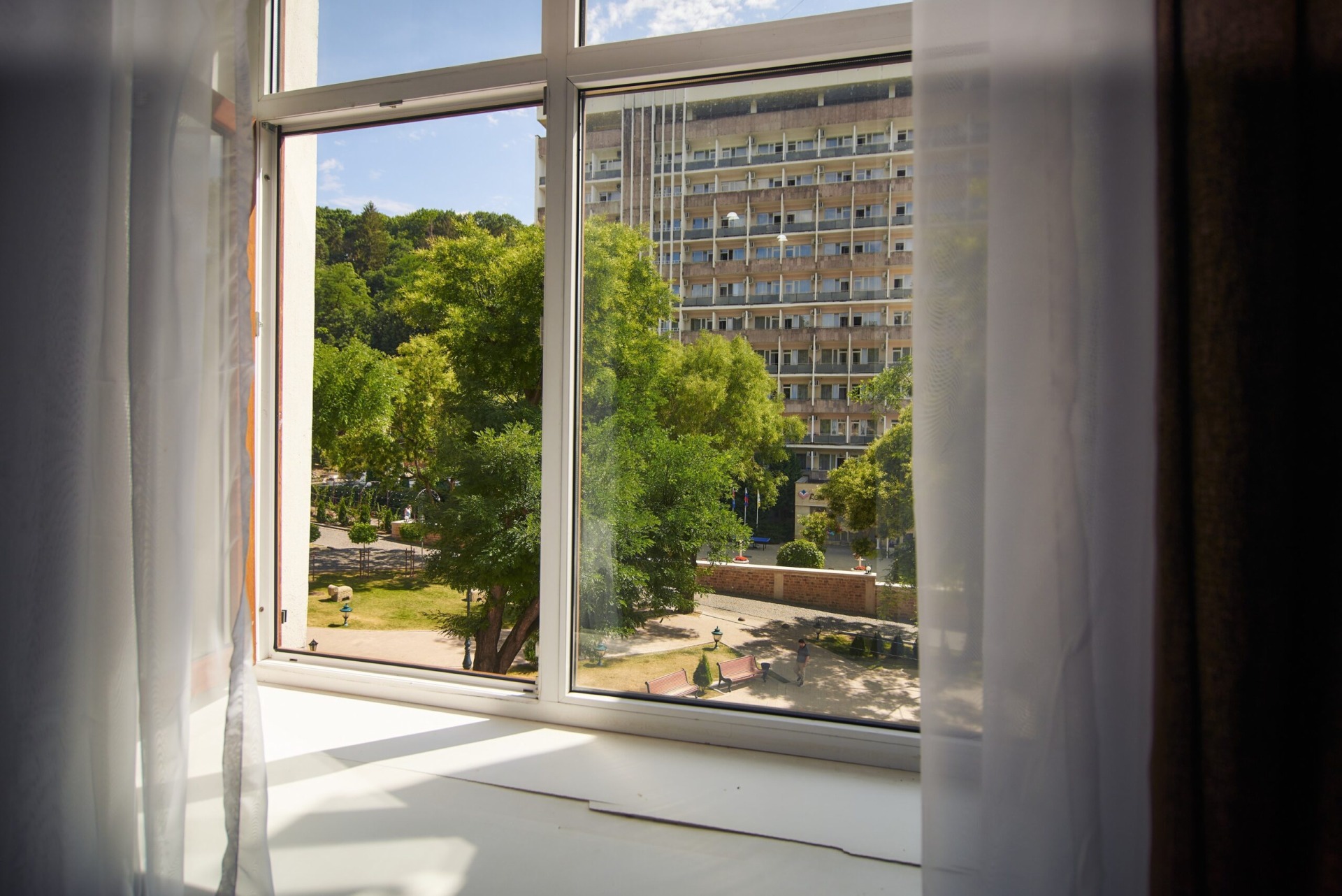Корпус № 2 - 4х этажный без лифта. В корпусе расположены номера, лечебные кабинеты, столовая, танцевальный и спортивный залы. Балконы почти во всех номерах.