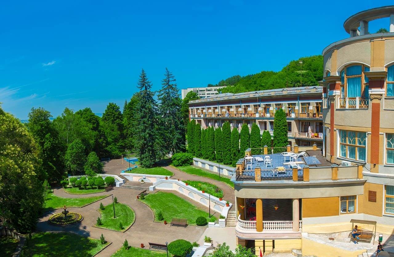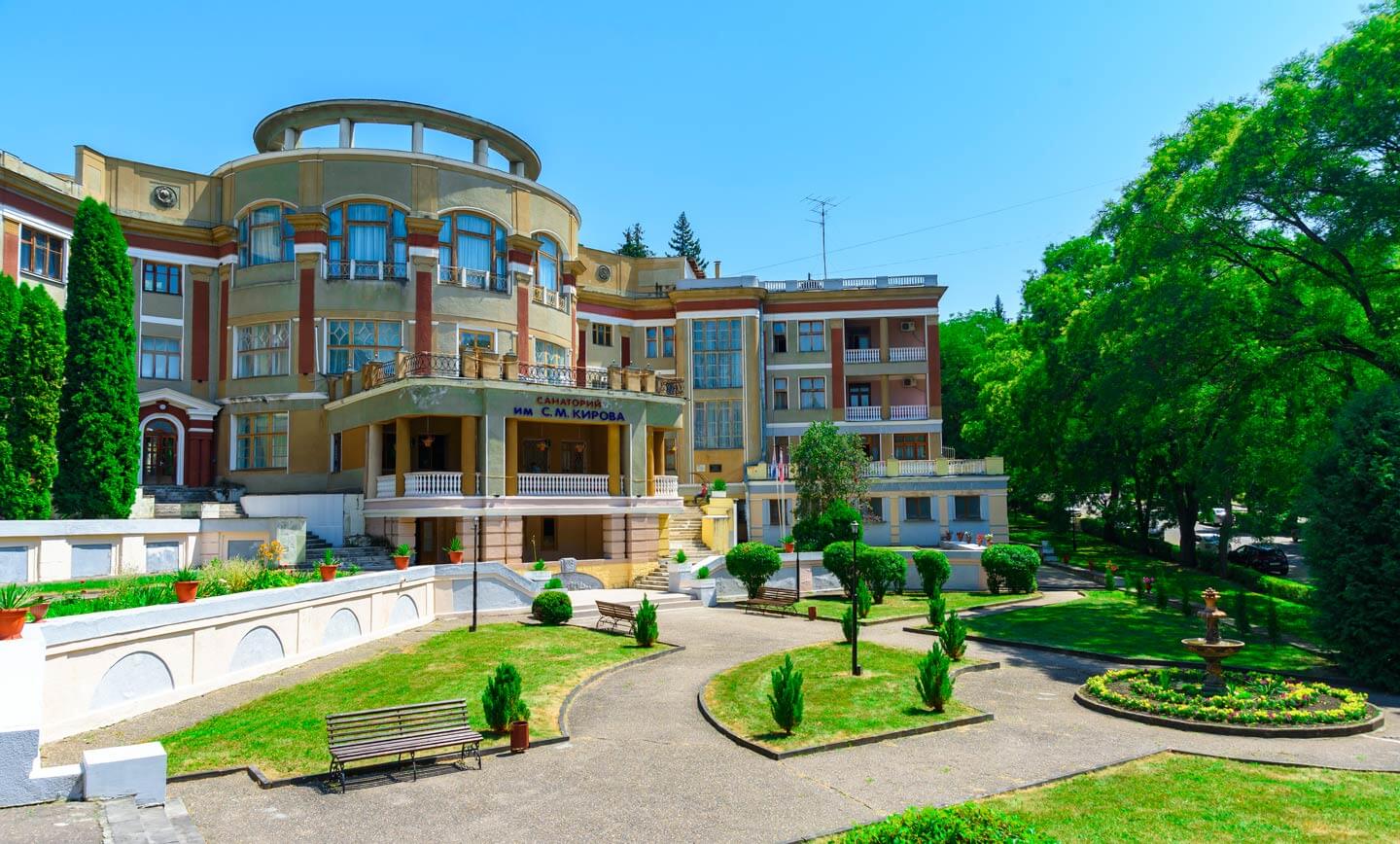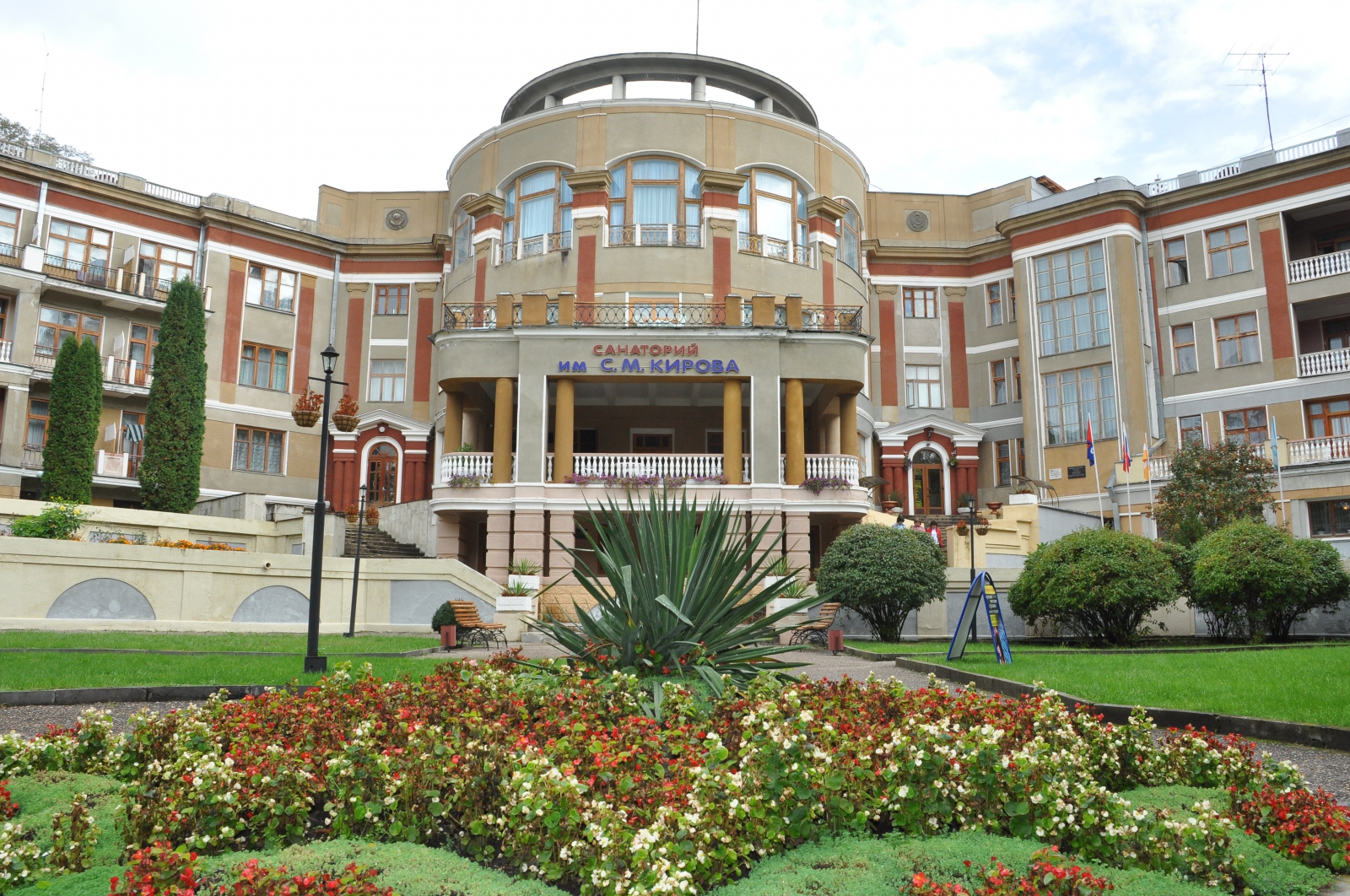 Санаторий "имени Кирова" расположен в курортной зоне, у входа в центральную часть курортного парка, на высоте 920м. над уровнем моря. Расстояние до центра города и центральной питьевой галереи – 1200м.