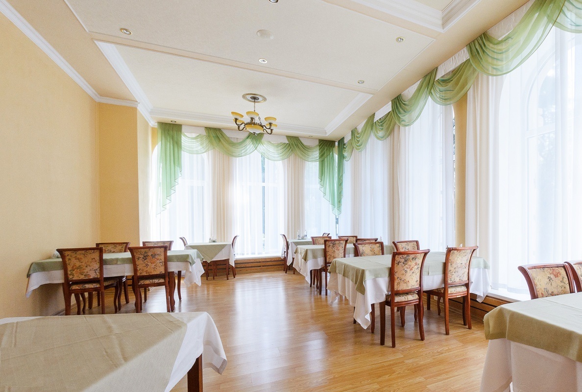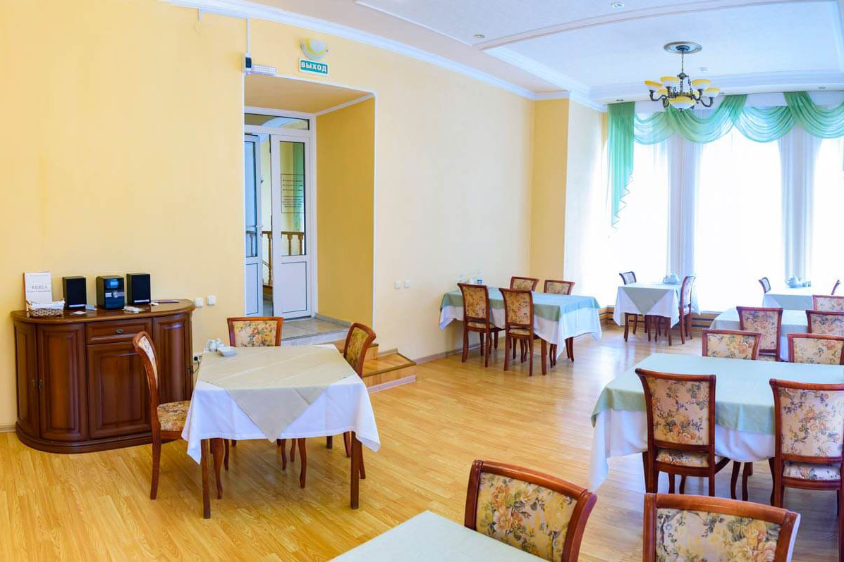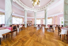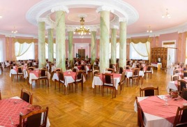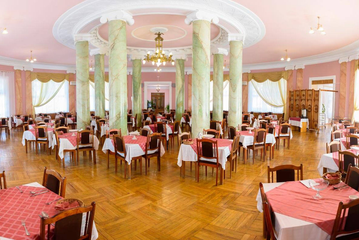 - Столовая главного корпуса — великолепный круглый зал с мраморными колоннами, рассчитана на 140 посадочных мест;