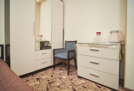 - 2-местный номер 2-категории. (39 номеров). Площадь: 12 кв.м. В номере: телевизор, холодильник, электрочайник, санузел: душ с поддоном.