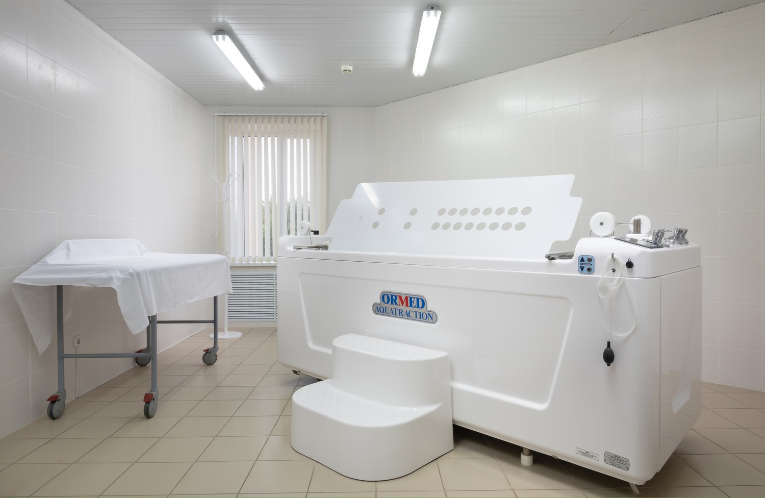 - Водолечение: души шарко, веерный, циркулярный, восходящий; гидромассаж, вихревые ванны конечностей, подводное вертикальное вытяжение позвоночника, бассейн