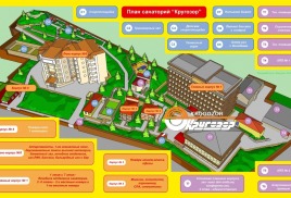 Питание: 3-разовое диетическое питание "заказное меню", два обеденных зала: в Главном корпусе (корпус №1) и Люкс-корпусе (корпус №5).