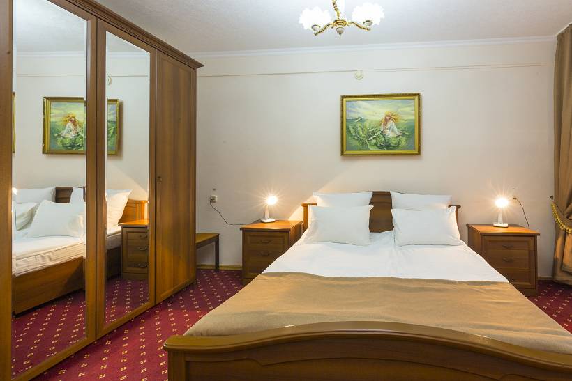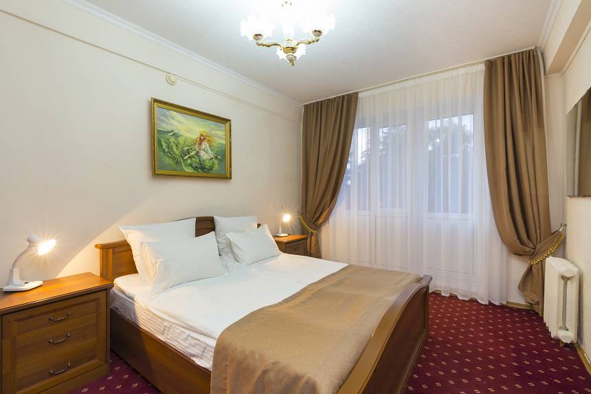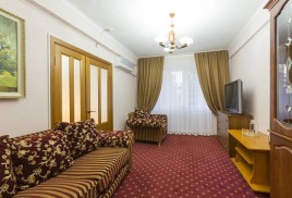 - 2-местный 2-комнатный Люкс. Площадь 32 кв.м. В номере: спальня, гостиная с мягкой мебелью, санузел с ванной, телевизор, холодильник, электрочайник, телефон, радио, свч печь, балкон.