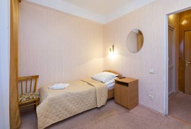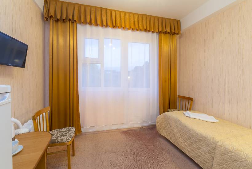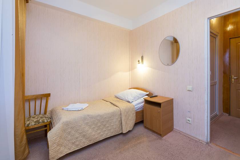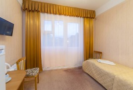 - 1-местный 2-категории. Площадь 9 кв.м. В номере: односпальная кровать, санузел с душем, телевизор, холодильник, электрочайник, радио, балкон.