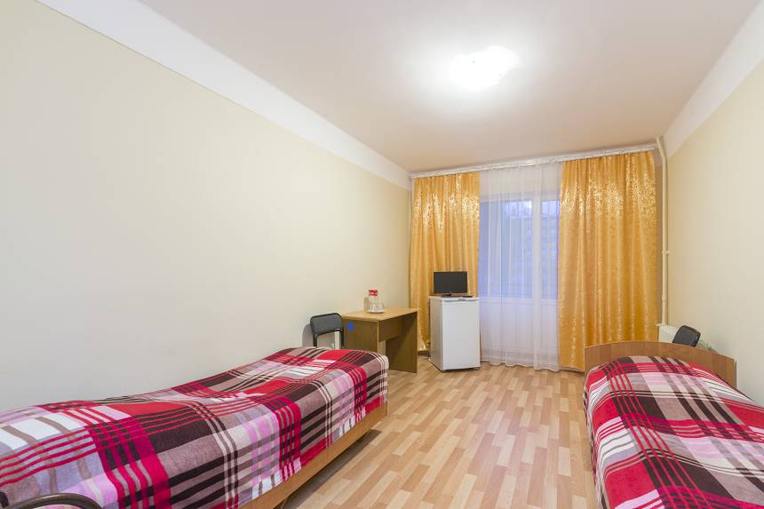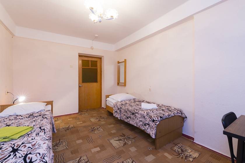- 2-местный 3-категории. Площадь 9-14 кв.м. В номере: две односпальные кровати, санузел с душем, телевизор, холодильник.