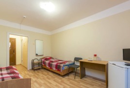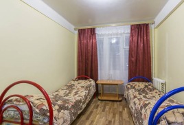 - 4-местный 2-комнатный 3-й категории. Площадью 9-14 кв.м. В номере: четыре односпальные кровати, санузел с душем, телевизор