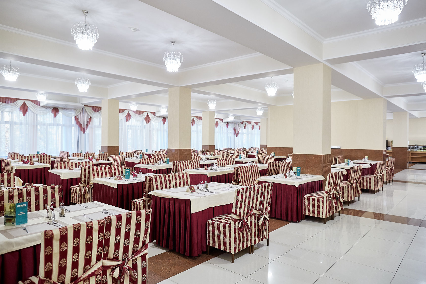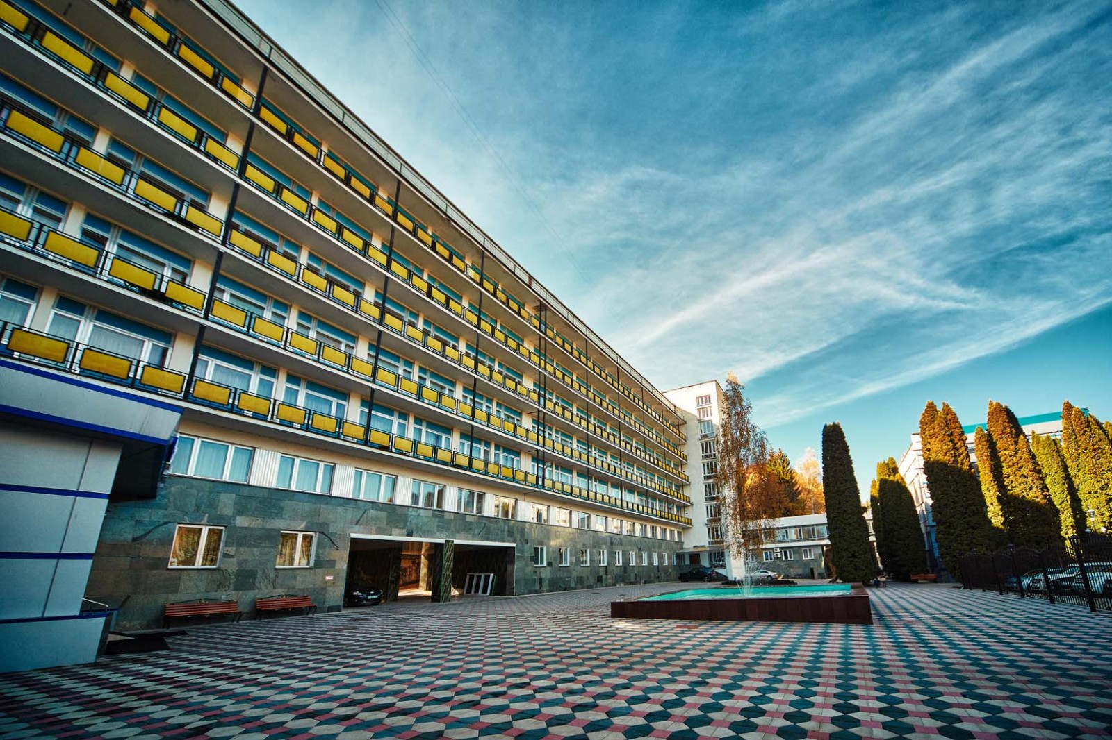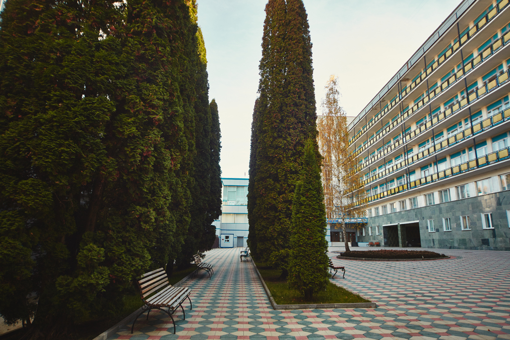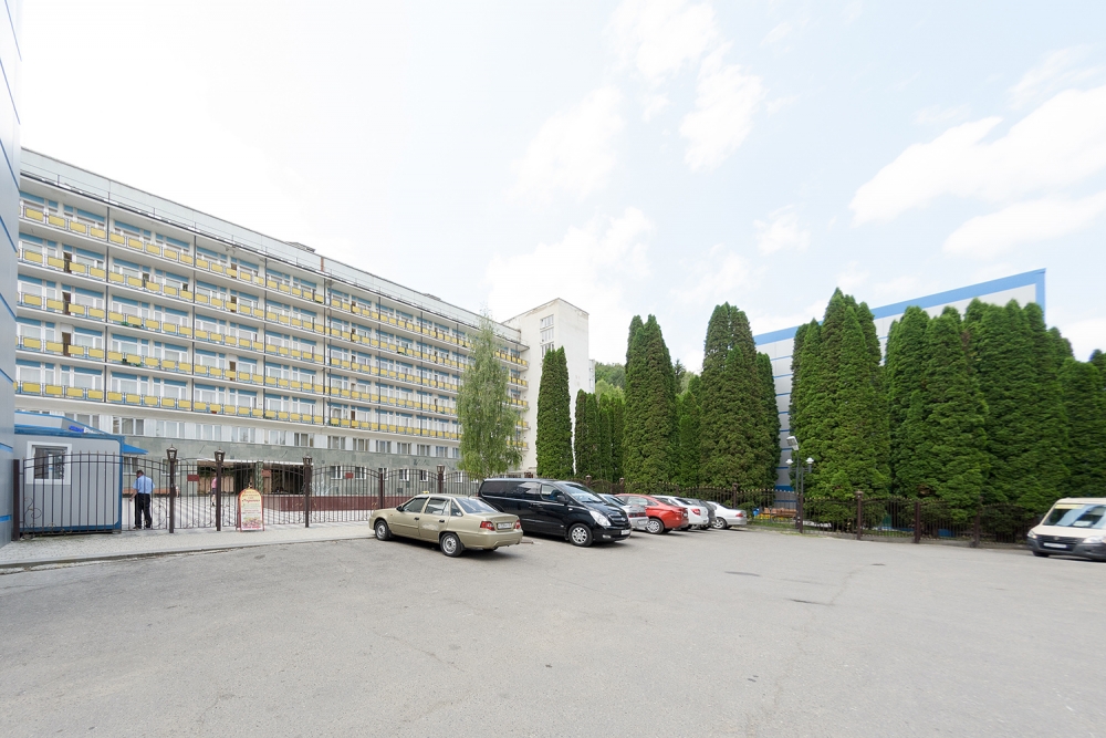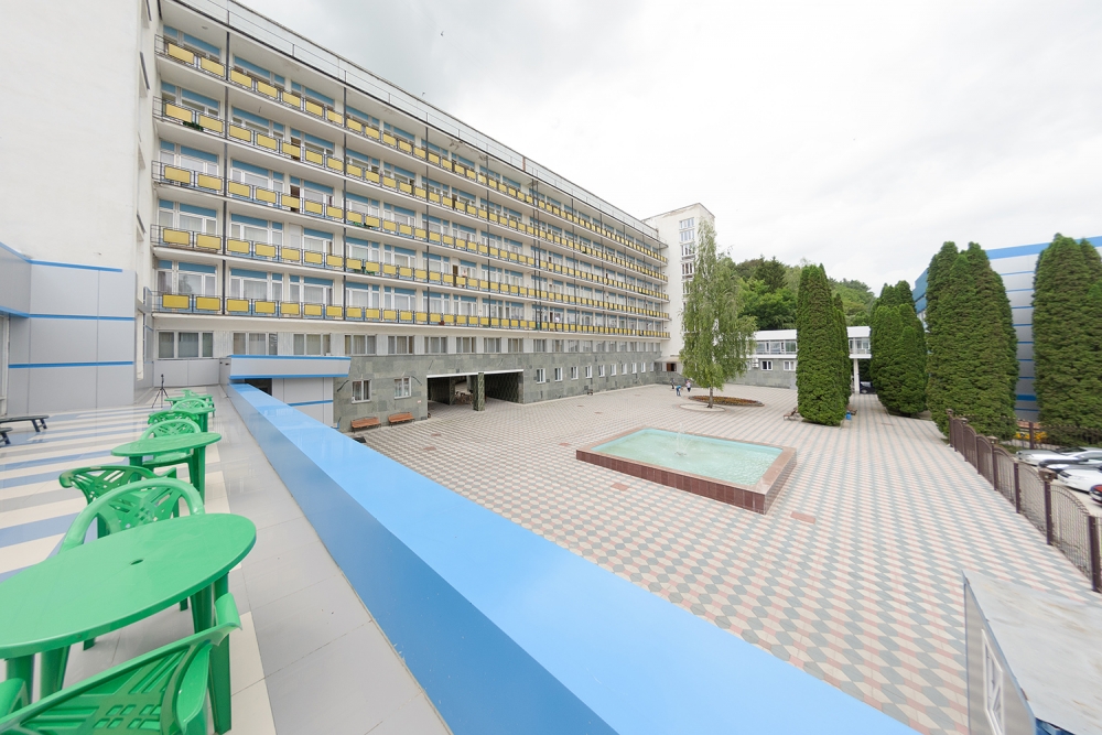 Размещение: 3-корпуса соединенных между собой теплыми переходами: 7-этажный спальный корпус с лифтами, 3-этажный лечебный корпус и 3-этажное здание клуба-столовой.