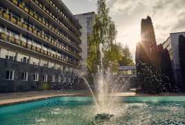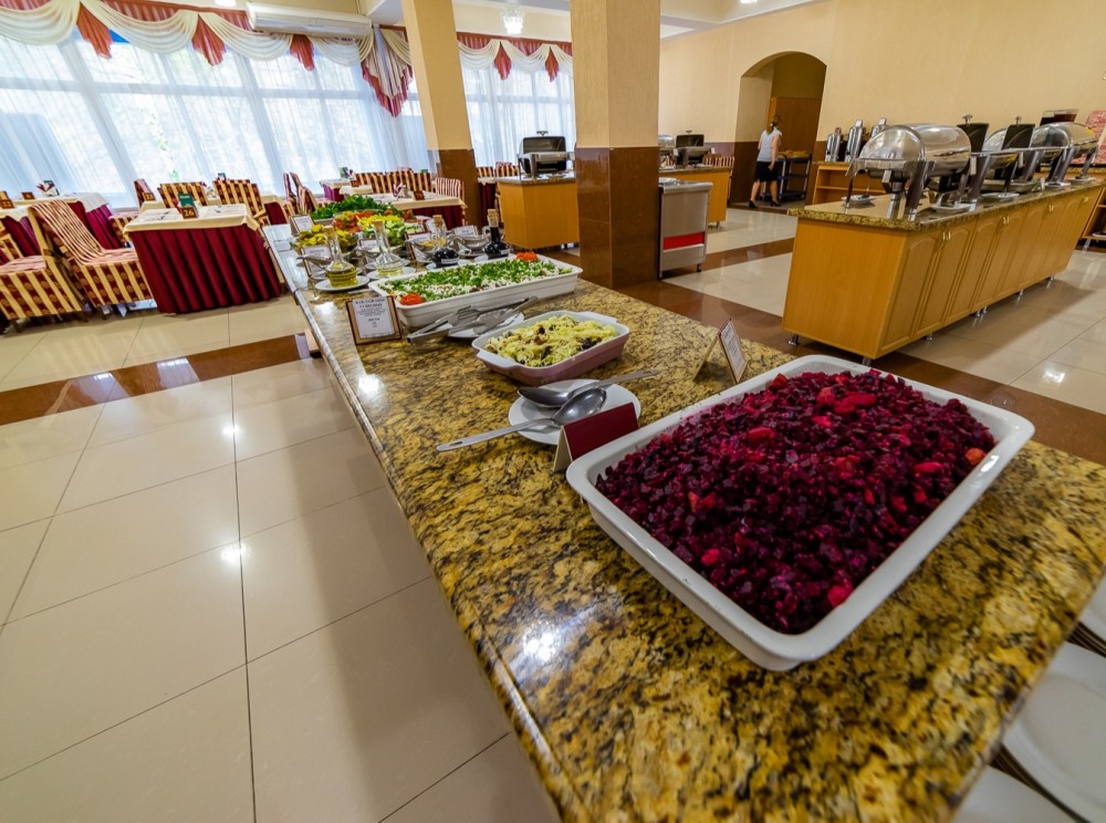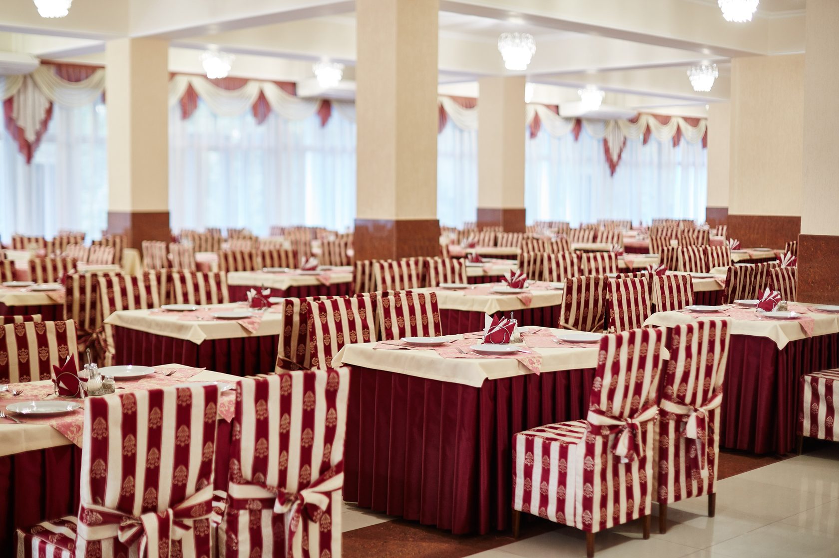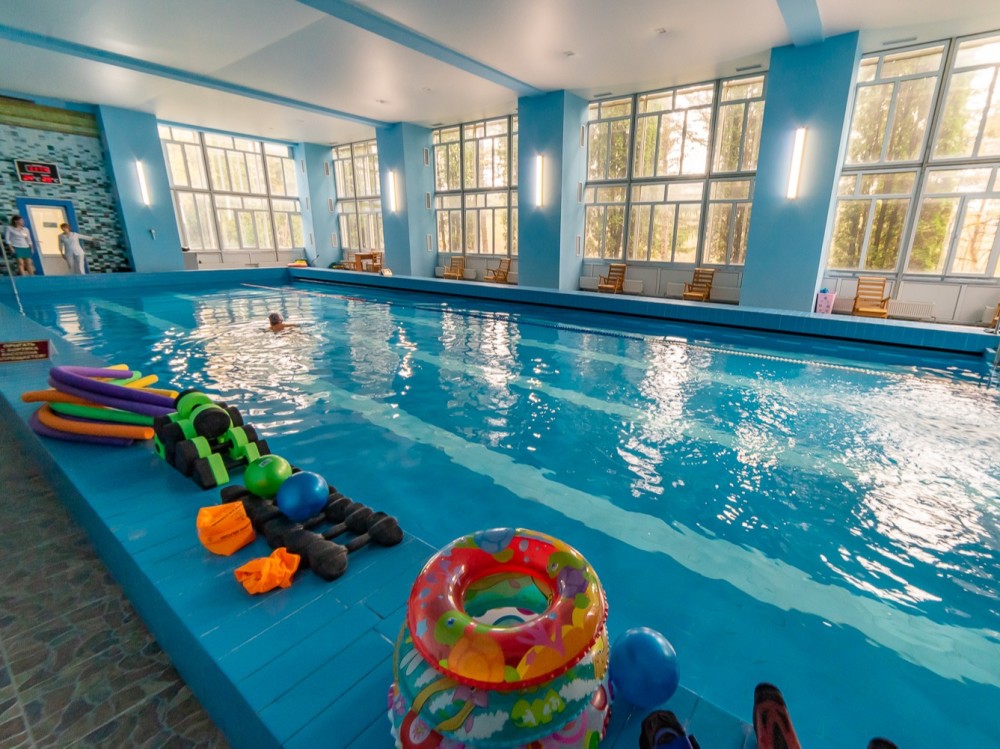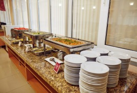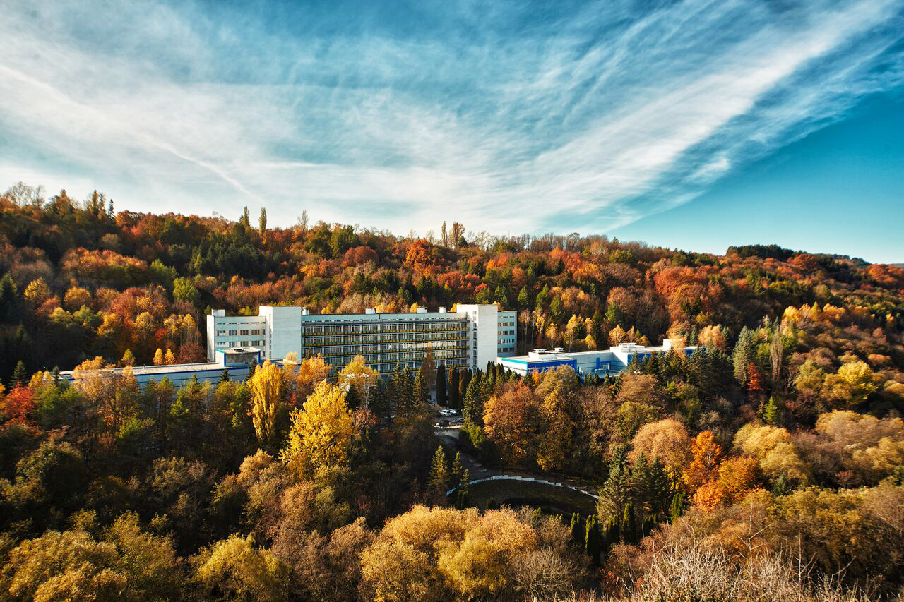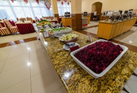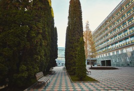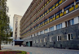 Размещение: 3-корпуса соединенных между собой теплыми переходами: 7-этажный спальный корпус с лифтами, 3-этажный лечебный корпус и 3-этажное здание клуба-столовой.