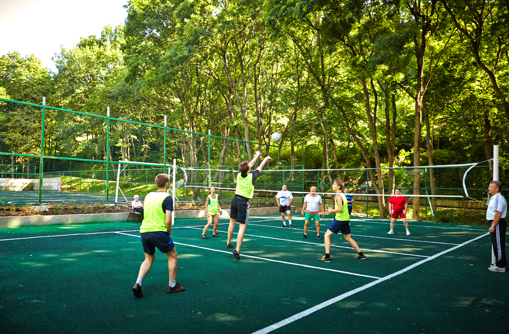 - волейбольная площадка, футбольное поле, теннисный корт, площадка для игры в городки;