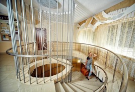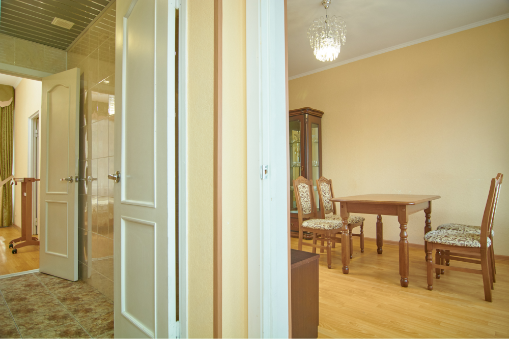 - 2-местный 3-комнатный Люкс. 2-7й этажи. Площадь 51.2 м². В номере: столовая, гостиная с мягкой мебелью, спальня с двуспальной кроватью, телевизор,утюг с гладильной доской, холодильник, микроволновая печь, фен, сейф, санузел с душевой кабиной. Балкон.