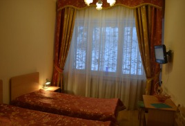 - 2-местный стандарт без балкона. 3-7 этажи Площадь 19м². В номере: одна двуспальная или две односпальные кровати, холодильник, телевизор, фен, сейф, санузел с ванной.
