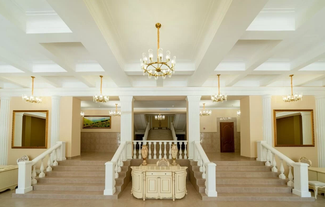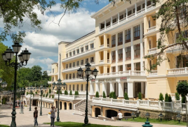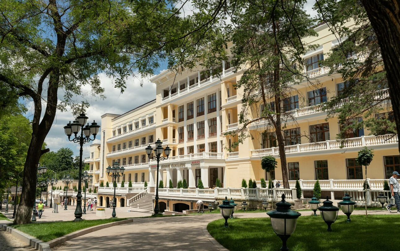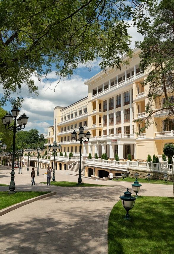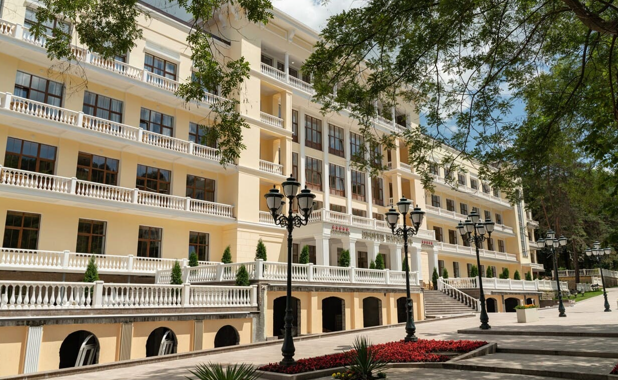 Санаторий «Дворец Нарзанов» 5* в Кисловодске расположился в самом центре пешеходного бульвара на проспекте Ленина. Всего в 150 метрах находится вход в Курортный парк. На территории санатория имеются собственные бюветы, в которых представлено 5 видов минеральных вод - «Славяновская», «Ессентуки-4», сульфатный, доломитный и общий «Нарзан».