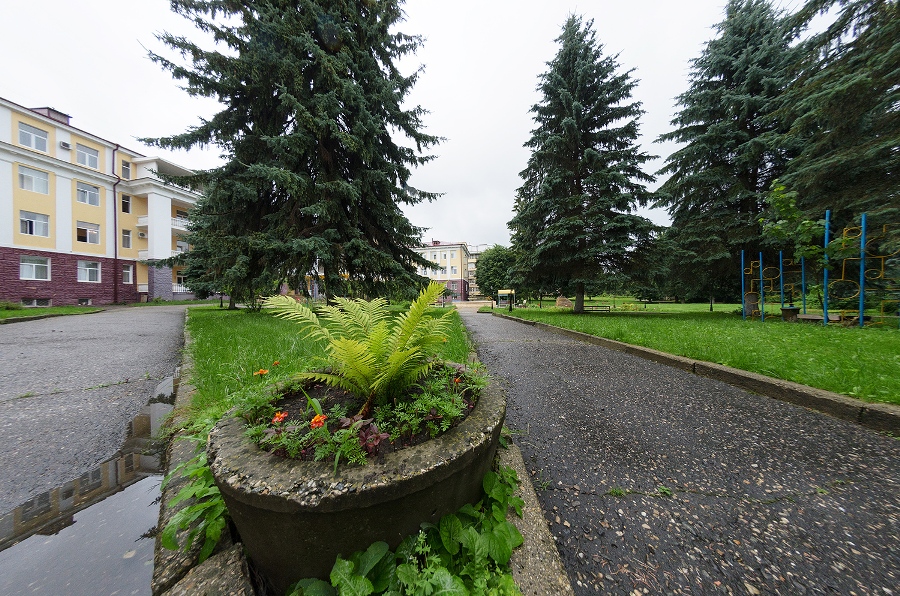 Размещение: 4-этажный жилой корпус с лифтом, 5-этажный жилой корпус с лифтом, лечебный корпус. Все корпуса соединены теплыми переходами.