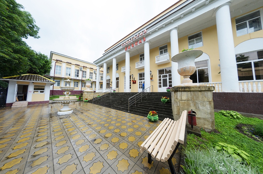 Санаторий "Кавказ" - это комплекс, состоящий из трех корпусов, соединенных крытыми переходами: старинное четырехэтажное здание, новые пятиэтажный жилой и лечебный корпуса.