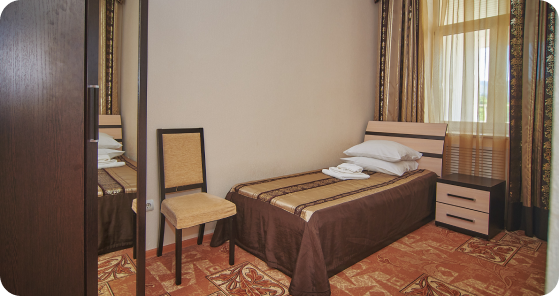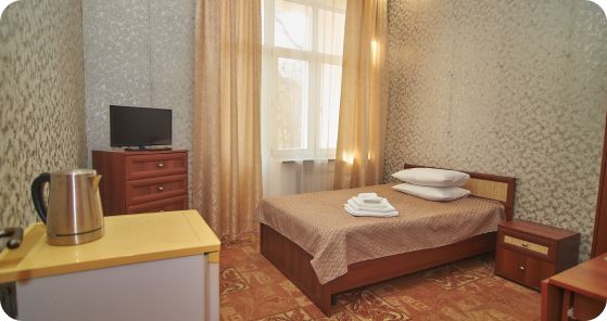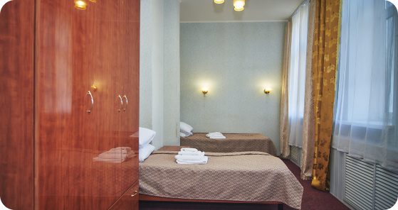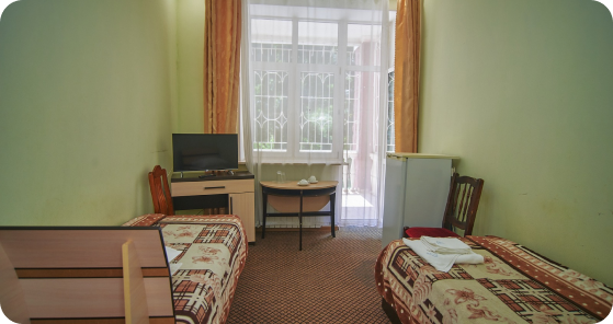- 2-местный 1-комнатный Эконом. Площадь: 12 кв.м. В номере: две односпальные кровати, телевизор, холодильник, санузел с душем. Номер без балкона. Дополнительное место не устанавливается.