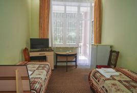 - 2-местный 1-комнатный Стандарт. Площадь: 12 кв.м. В номере: две односпальные кровати, телевизор, холодильник, санузел с душем. Номер с балконом. Дополнительное место не устанавливается.