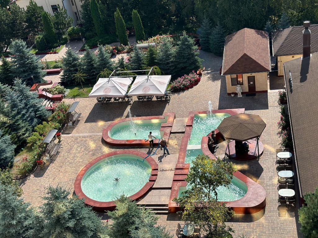 Великолепные террасы, фонтаны и музыка перенесут Вас в прекрасный уголок Санкт-Петербурга, где Вы сможете наслаждаться кавказской кухней, любуясь великолепием цветомузыкальных поющих фонтанов.