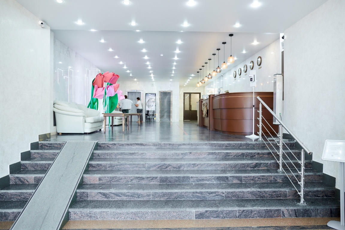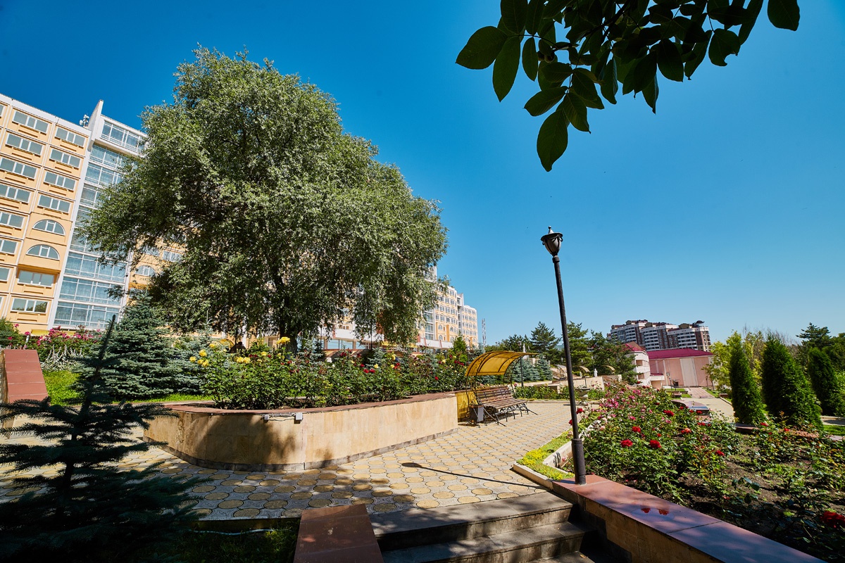 Размещение: четыре 9-этажных корпуса оборудованные лифтами, соединены между собой переходами, здесь расположены столовая, бассейн, лечебное отделение.