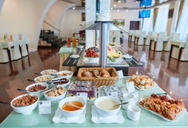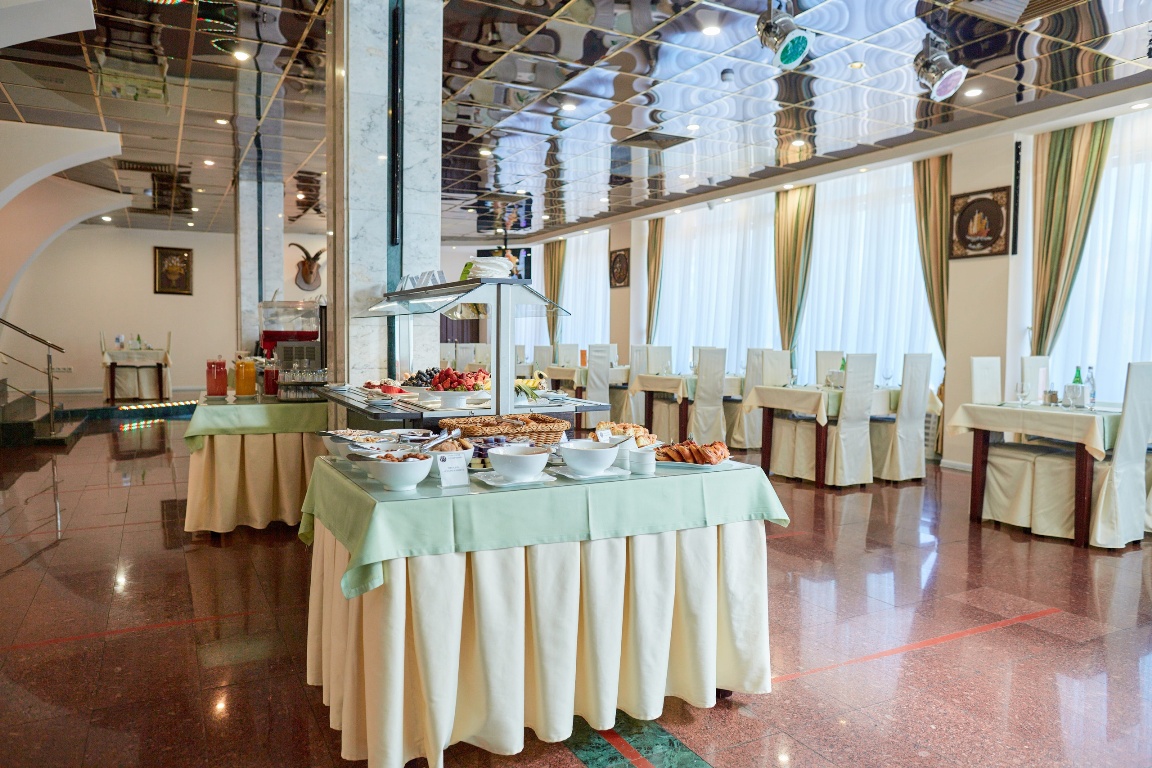 Здесь гостям всегда предложат всё самое лучшее из мира кулинарии. Вы сможете отведать исключительные салаты, теплые, холодные, пикантные закуски, горячие блюда.