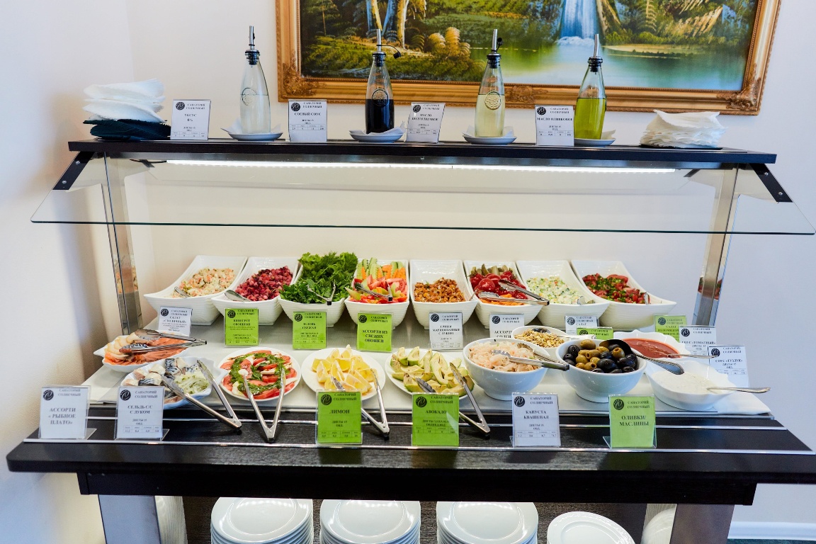 Предлагается трехразовое питание по системе Шведский стол, всё включено в стоимость путевки.