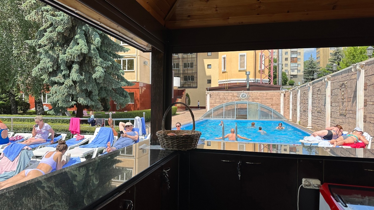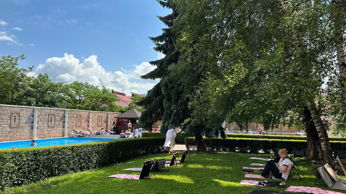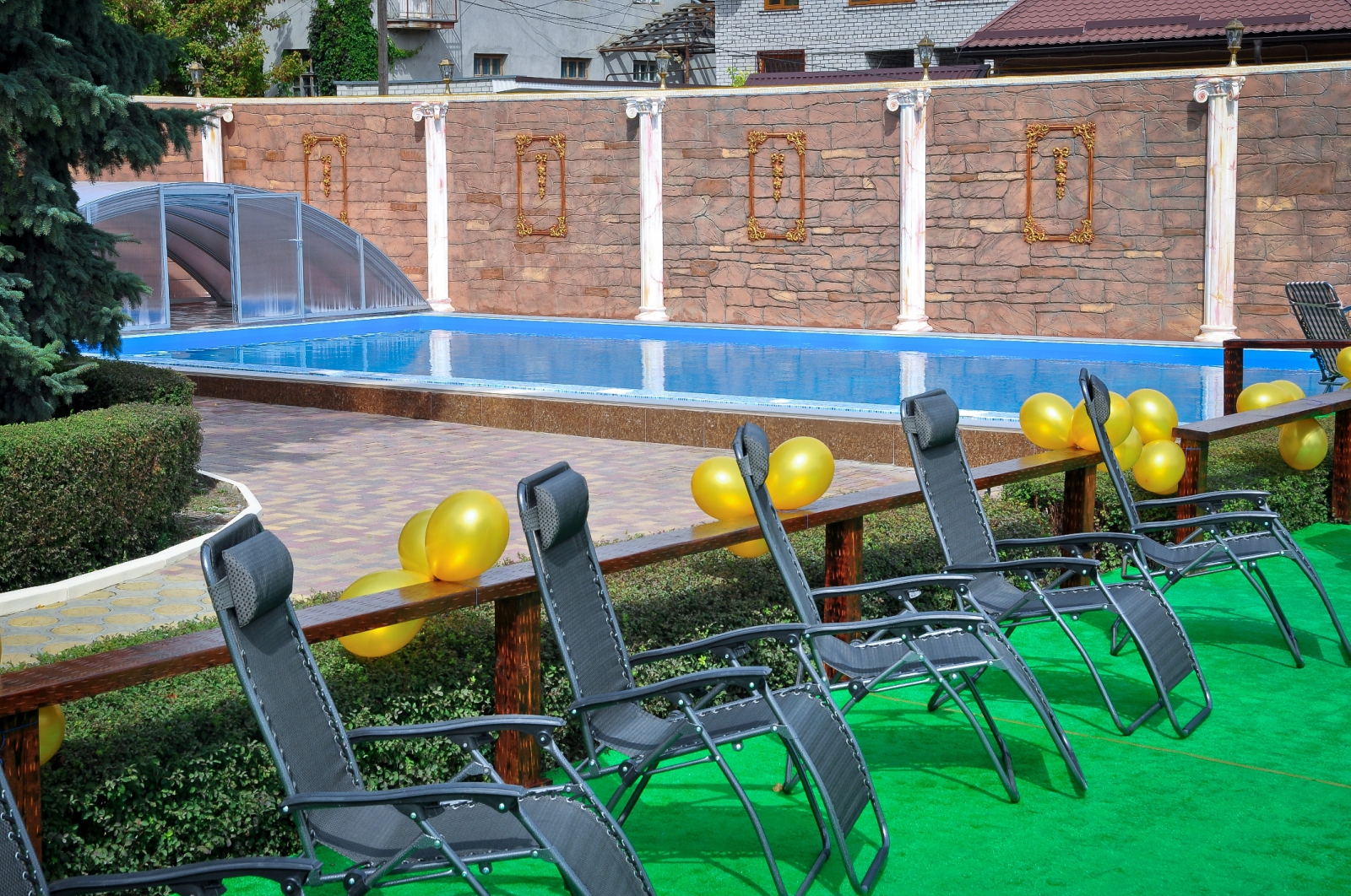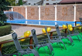 - открытый бассейн 13 метров, шезлонги, удобные кресла, душ, летный бар
