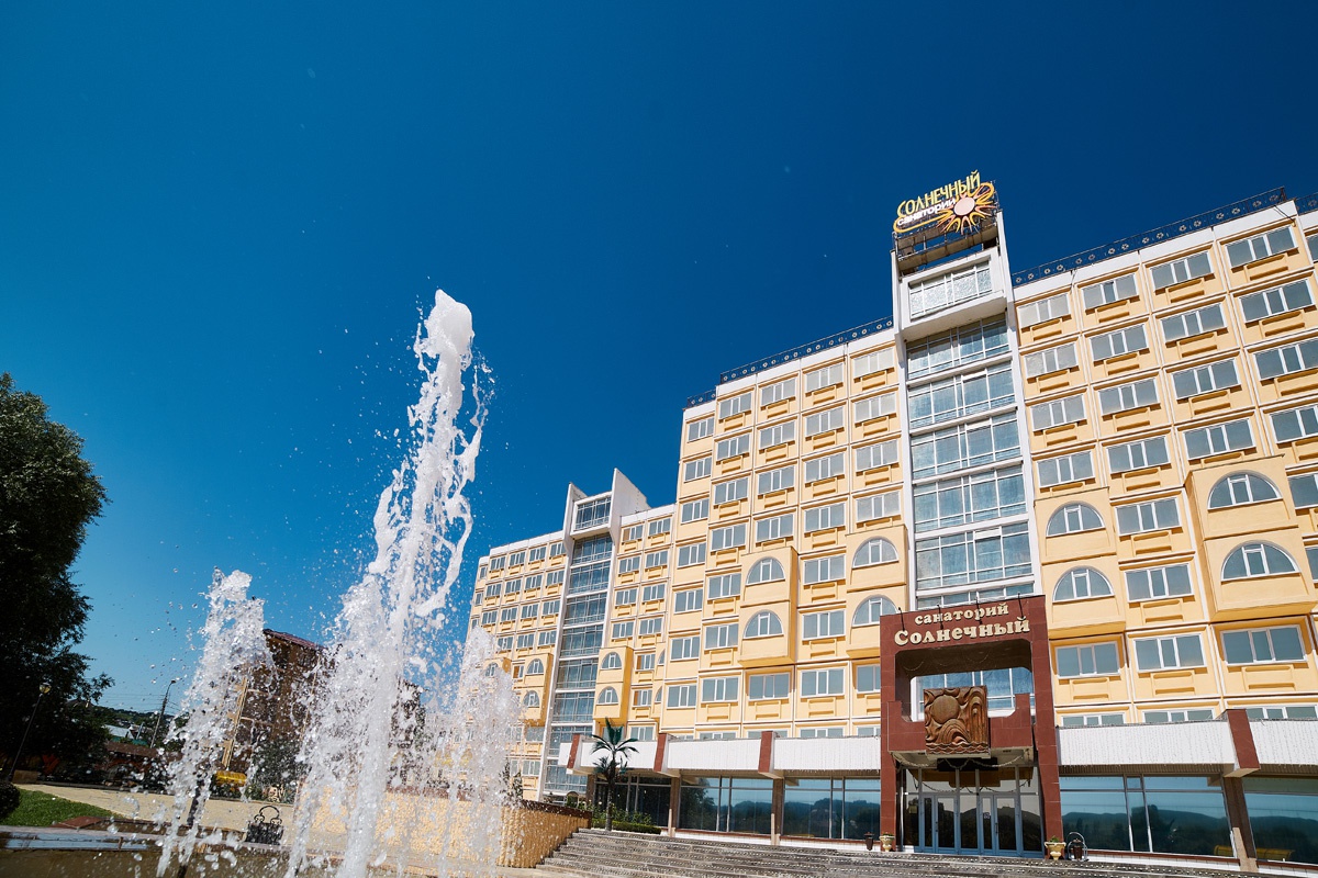 Санаторий «Солнечный» расположен в центре административной части Кисловодска, напротив Цирка, недалеко от администрации города, в непосредственной близости от магазинов, торговых и развлекательных центров, кинотеатра. До курортного бульвара 1,2 км. Санаторий располагает прекрасно обустроенной территорией, здесь раскинулся парк поющих цветомузыкальных фонтанов с террасами, благоустроенными аллеями и каскадами искусственных водопадов.