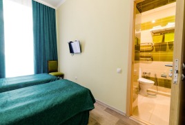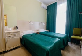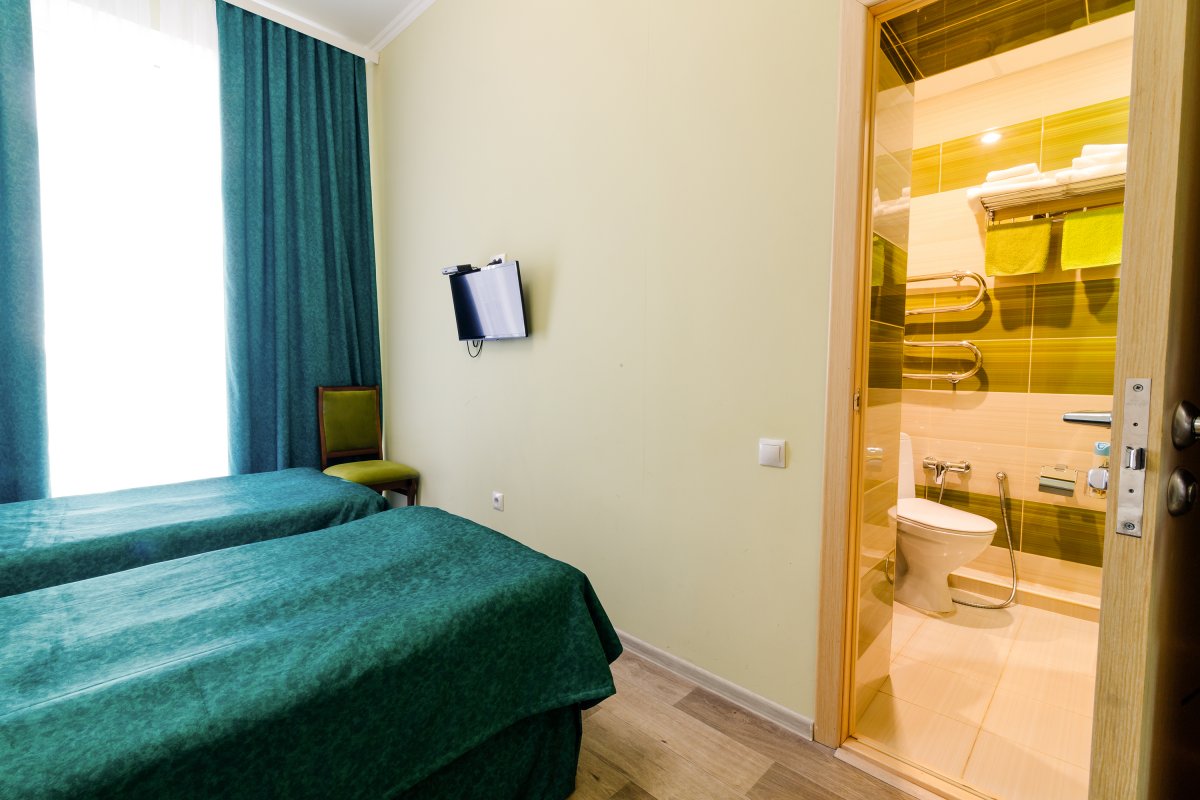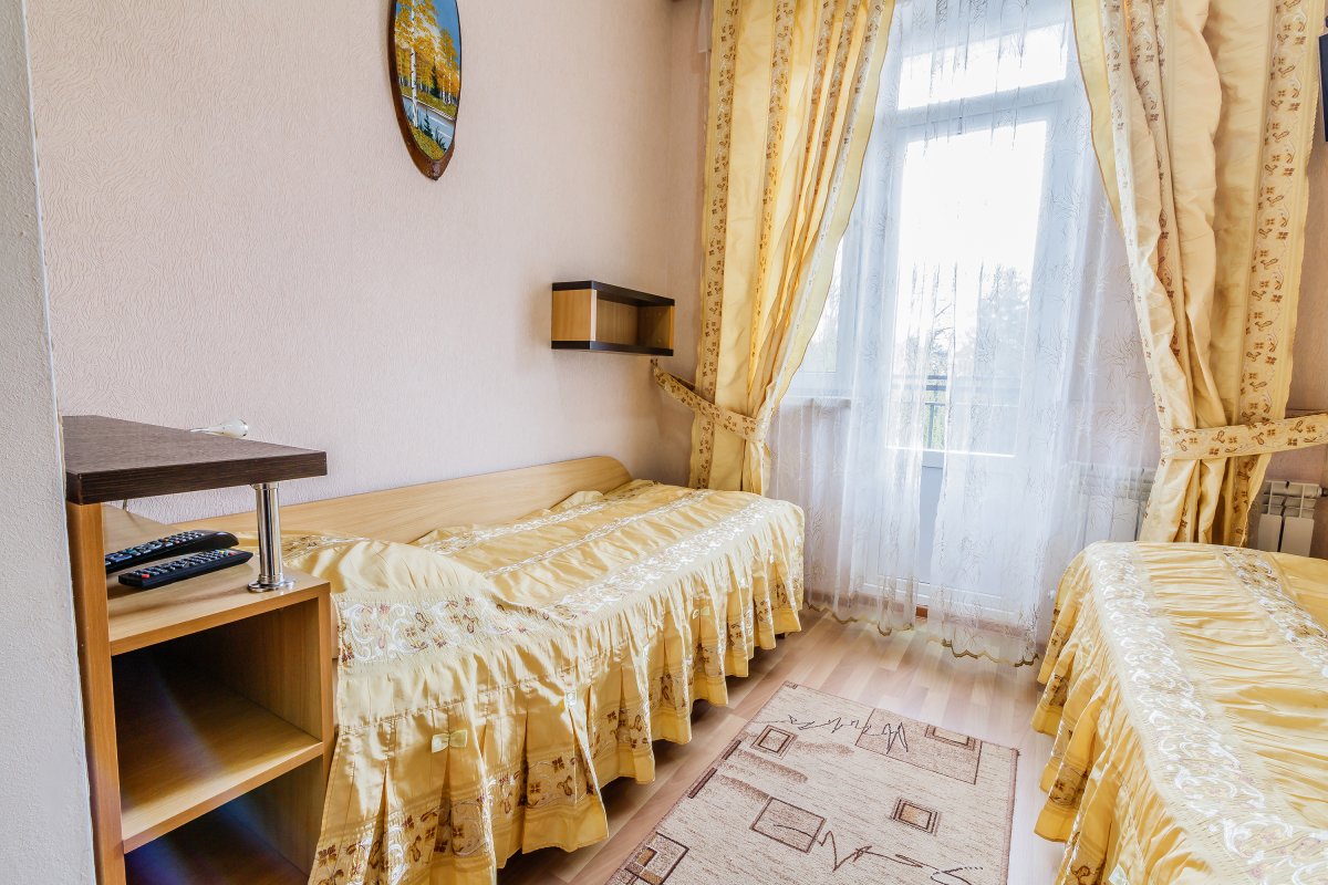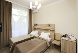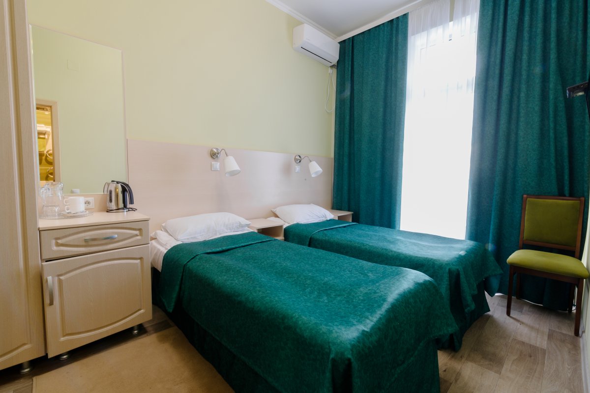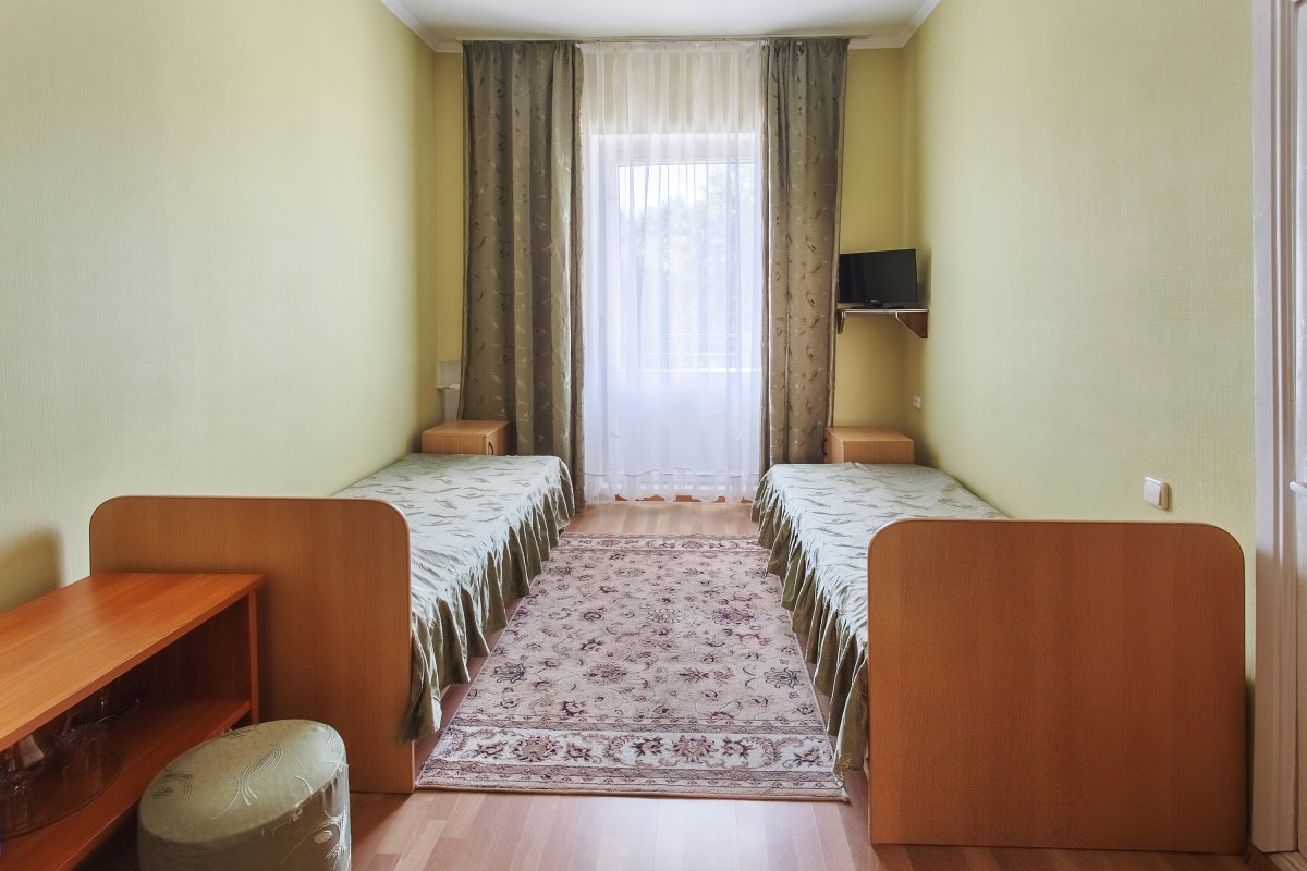 - 2-местный стандарт. Площадь 15 м2. В номере: две односпальные кровати, телевизор, холодильник, душ, туалет, кондиционер или балкон. Дополнительное место не устанавливается.