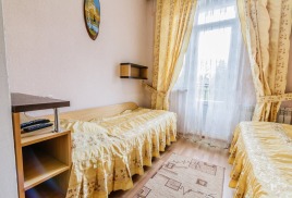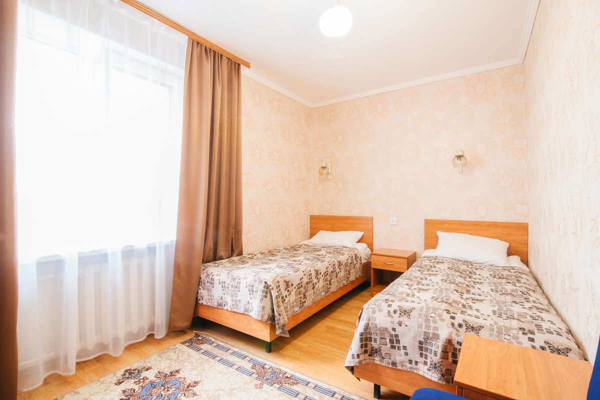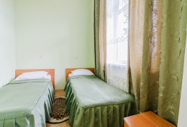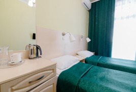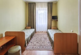- 2-местный улучшенный. Площадь 15 м2. В номере: две односпальные кровати, телевизор, холодильник, чайник, кондиционер, душ, туалет, , фен, балкон не во всех номерах. Дополнительное место не устанавливается.