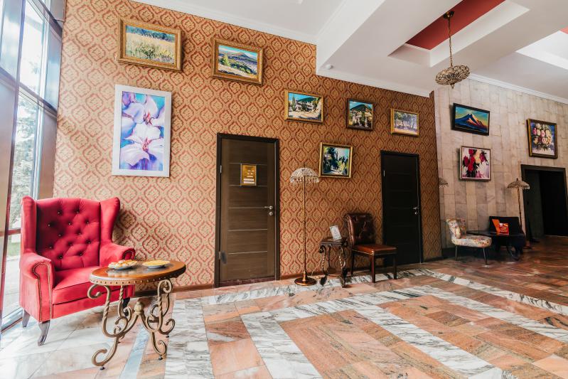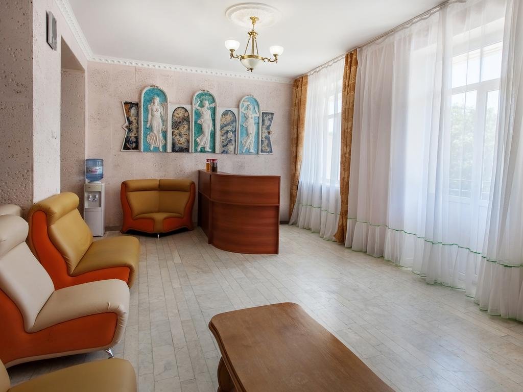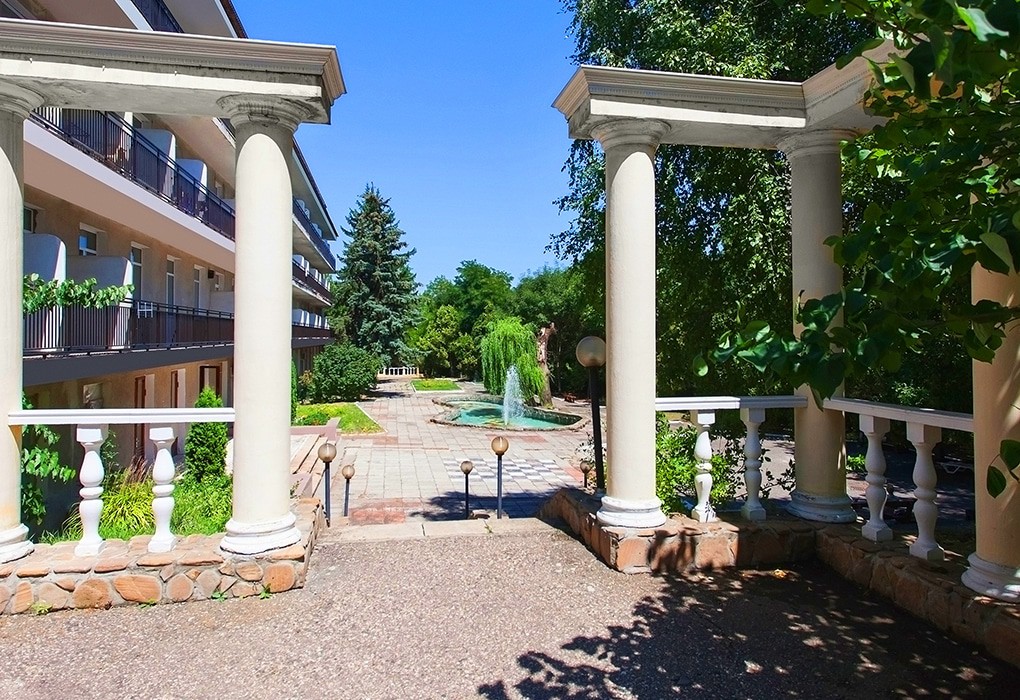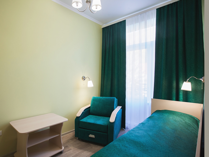 Размещение: Санаторий построен единым комплексом, который состоит из спального корпуса, лечебной базы, группы общественных помещений, столовой и клуба, которые соединены между собой теплым переходом. Лечебная база, находится в цокольном этаже главного корпуса. Главный корпус - 4 этажный с лифтом. Номера на 4 этаже без балкона, оснащены кондиционерами.