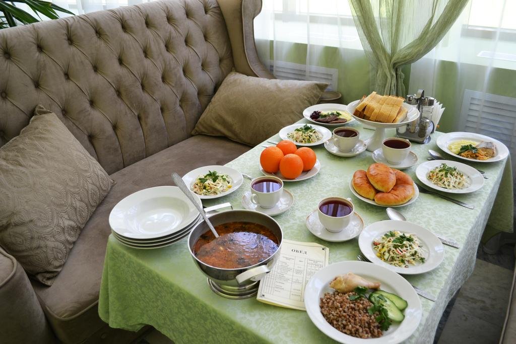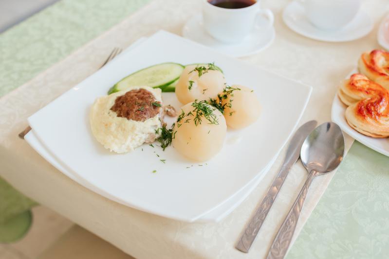 Питание: 3-х разовое диетическое питание по системе «меню-заказ» 7-ми дневного заказного меню. Диетическое питание в санатории организовано на основе стандартных диет: № 1,5,8,9,10 и 15. Для детей 5-ти разовое сбалансированное питание.