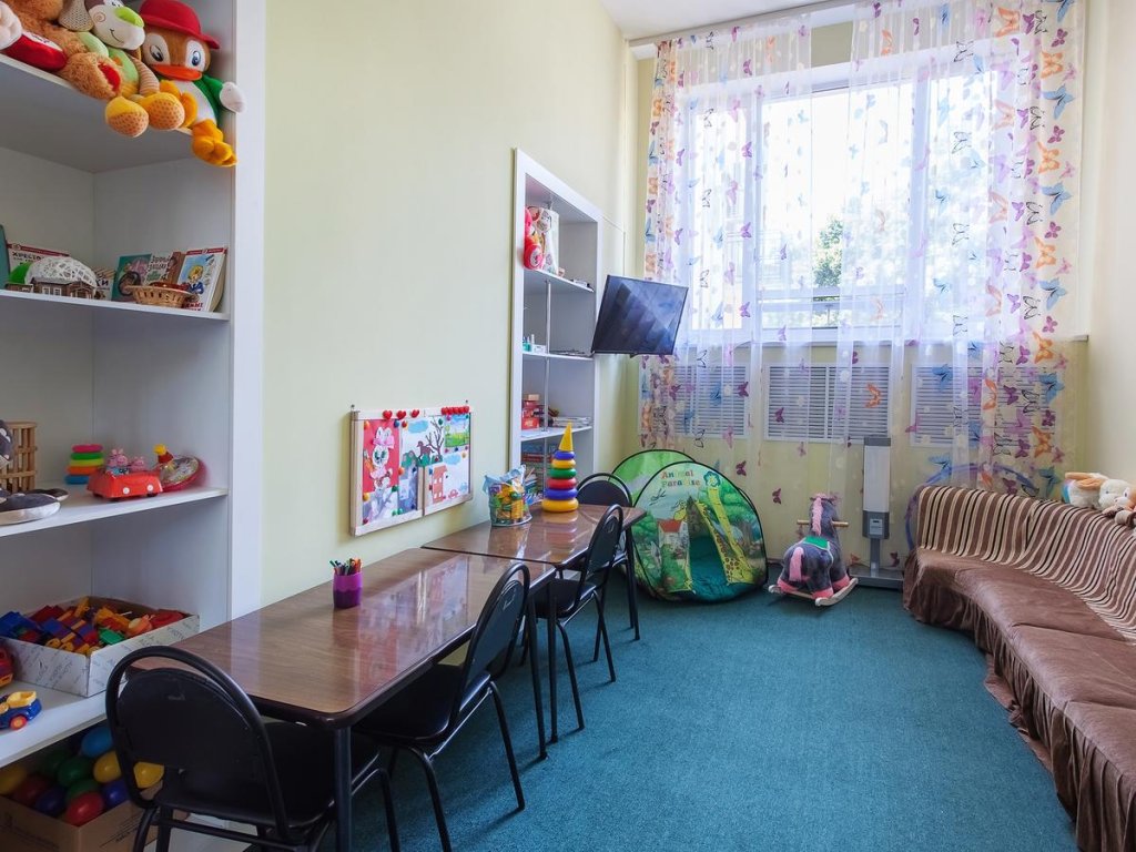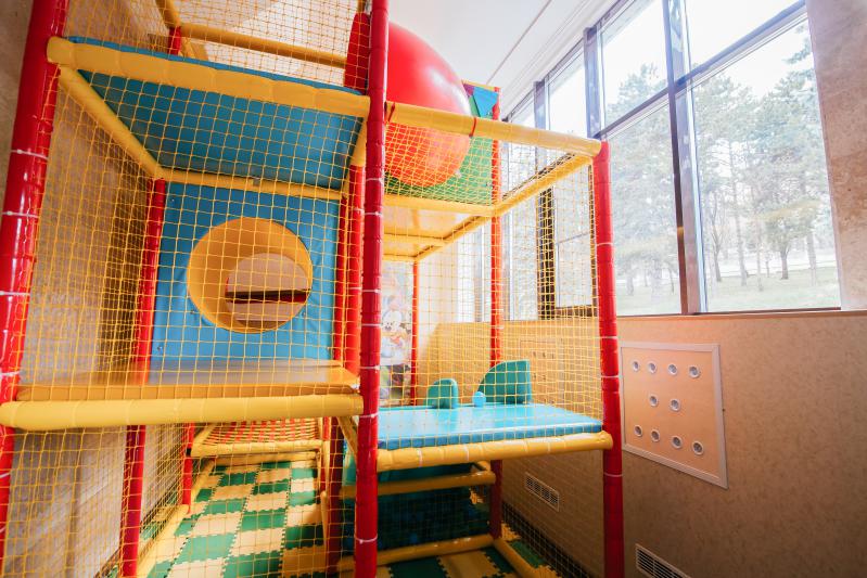 - детская площадка; детская комната с квалифицированными воспитателями ( можно оставить ребенка с 3х лет), в «детском уголке» можно рисовать, лепить, раскрашивать, поиграть в настольные игры, почитать увлекательные и развивающие книги; так же детям предлагается просмотр мультфильмов и детских художественных фильмов, развлекательные мероприятия.