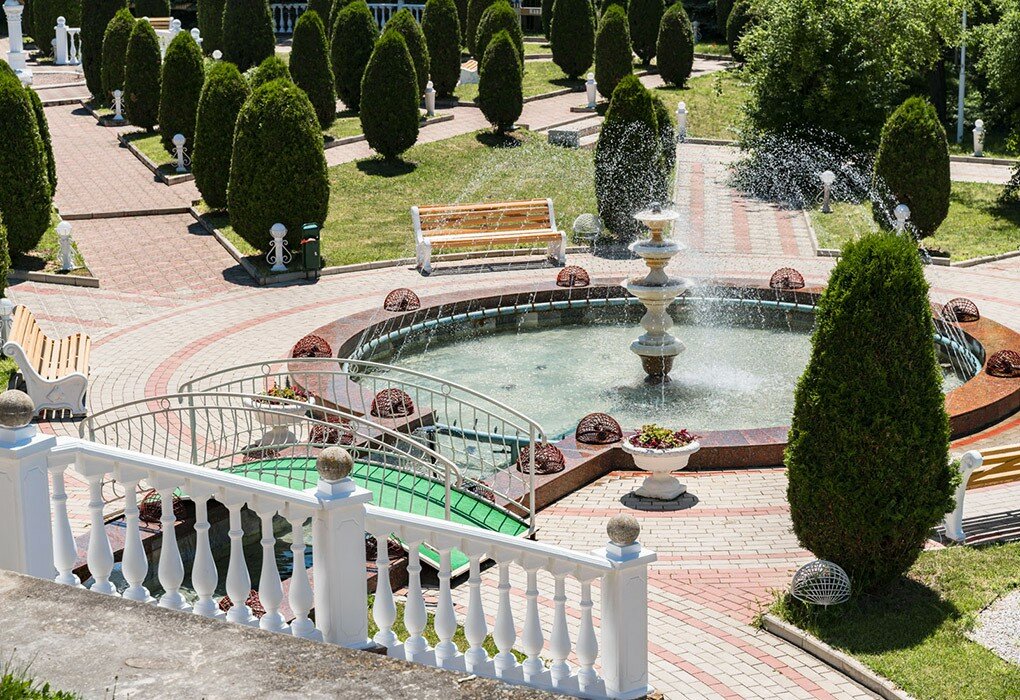 - релаксирующий отдых под нежный плеск струй свето-музыкального фонтана;