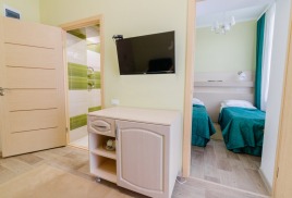 - 2-местный 2-комнатный семейный. Площадь 19 м2. В номере: гостиная, спальня с двумя односпальныим кроватями, телевизор, холодильник, чайник, душ, туалет, балкон или кондиционер. Дополнительное место - 2 человека.