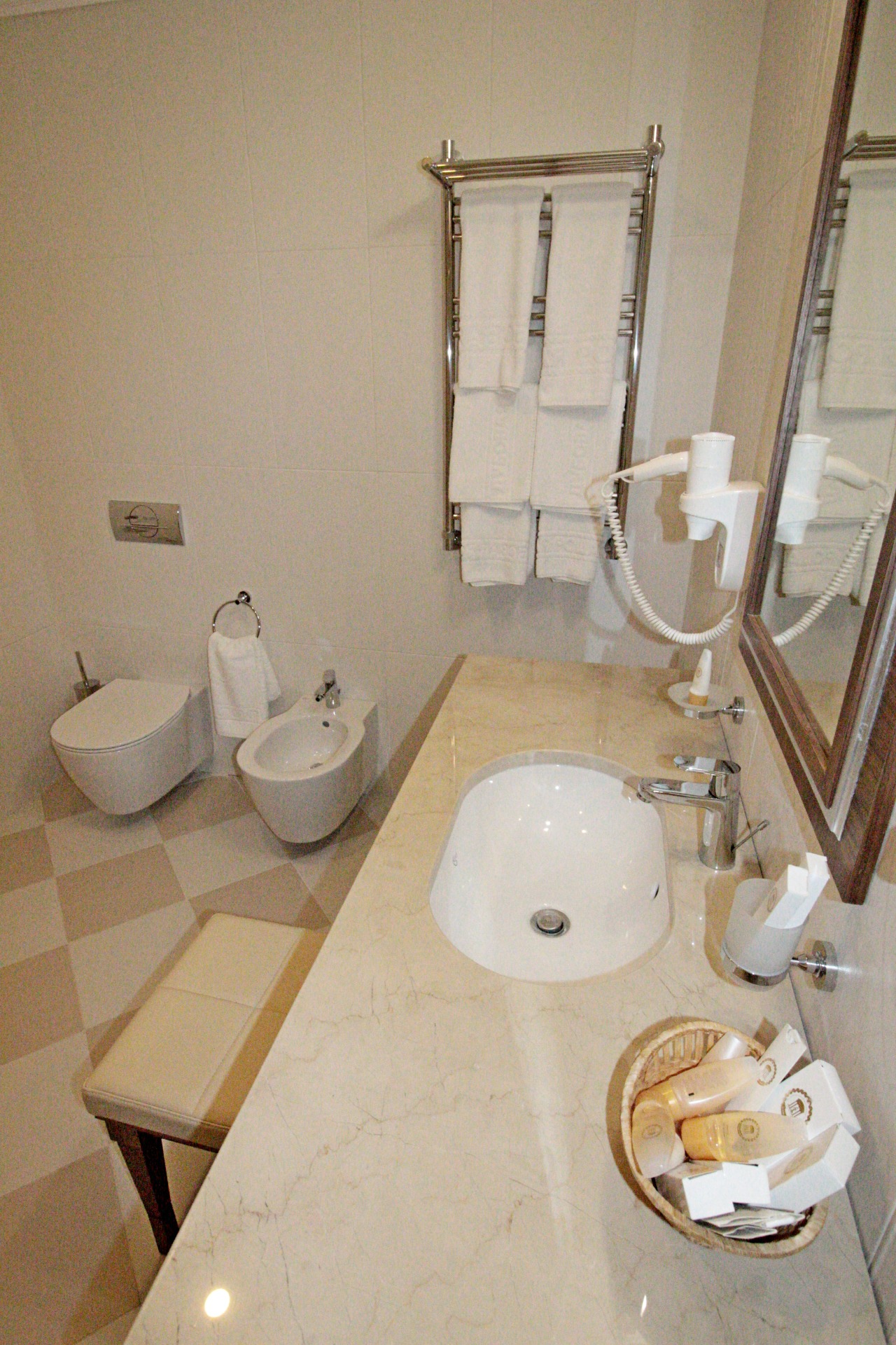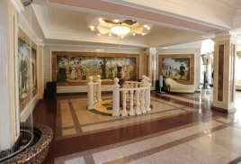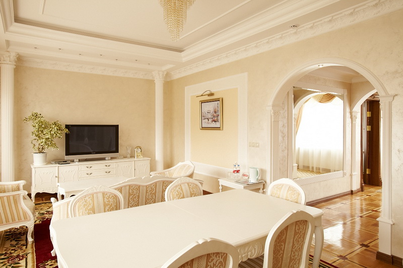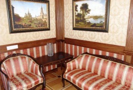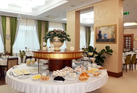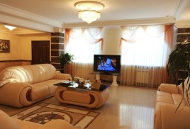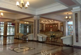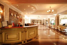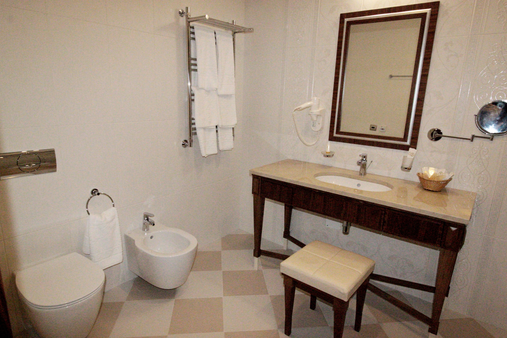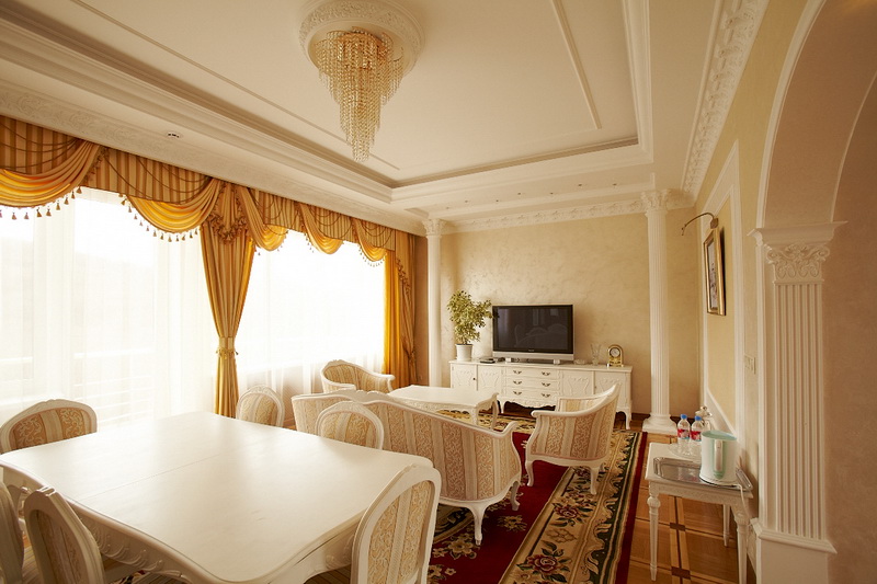 - 2-местный 3-комнатный Сюит. Площадь номера 81 м2. В номере: гостиная с мягкой мебелью, чайник электрический, холодильник, сплит-система, спальня с двуспальной кроватью, телевизор, доска гладильная, утюг электрический, сейф, кабинет, два санузла с ванной, фен, индивидуальный набор гигиенических средств, халат, балкон с летней парковой мебелью.
