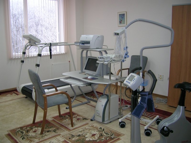 - Отделение функциональной диагностики: ЭКГ в стандартных отведениях и с фармакологическими пробами, ЭКГ переносимость процедур, суточное мониторирование АД и ЭКГ (аппарат «SCHILLER»), исследование функции внешнего дыхания (спирометрия), велоэргометрия и тредмилл-тест, ЦДС (цветное дуплексное сканирование).